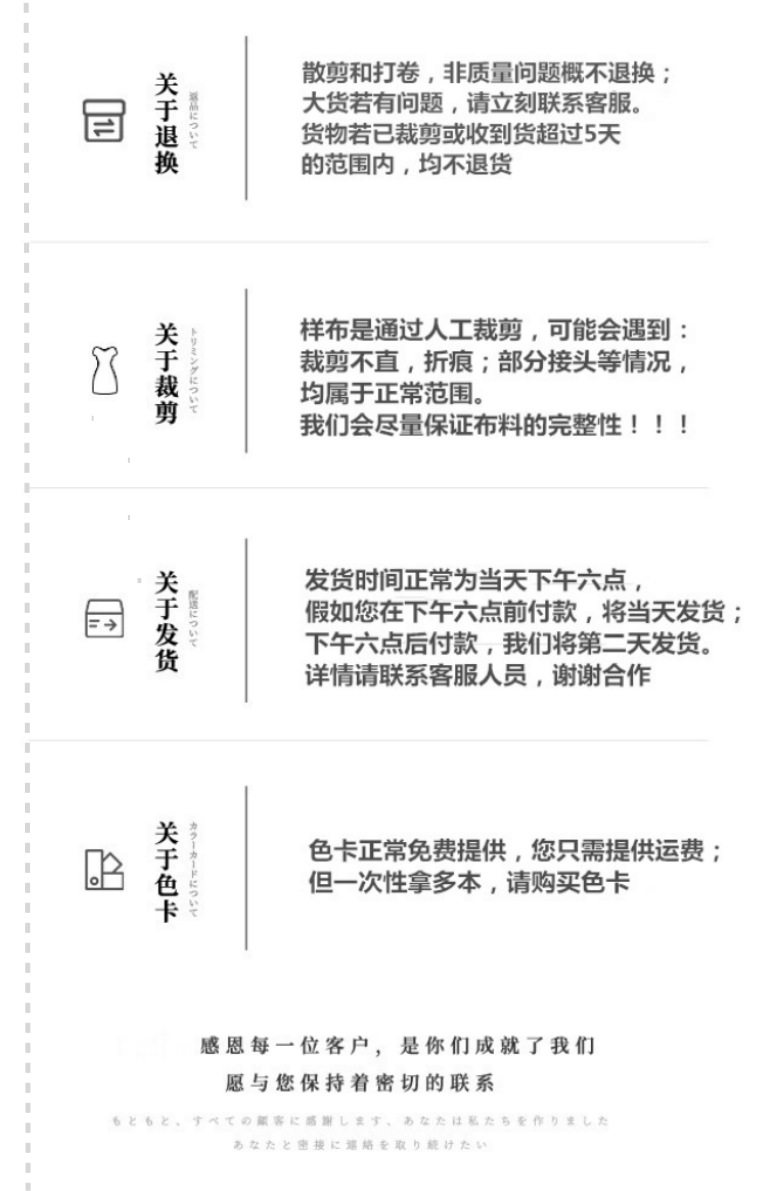| Specification model | 1-29 m,30-59 m,60-100 m,Monochrome full roll link,Single color reaches the large price quantity,Please contact customer service for the number of volumes. |