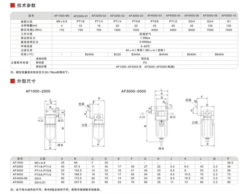 Pneumatic Oil-Water Separator Af2000-02Af3000-03Af4000-04 Filter Automatic Drainage Air Source