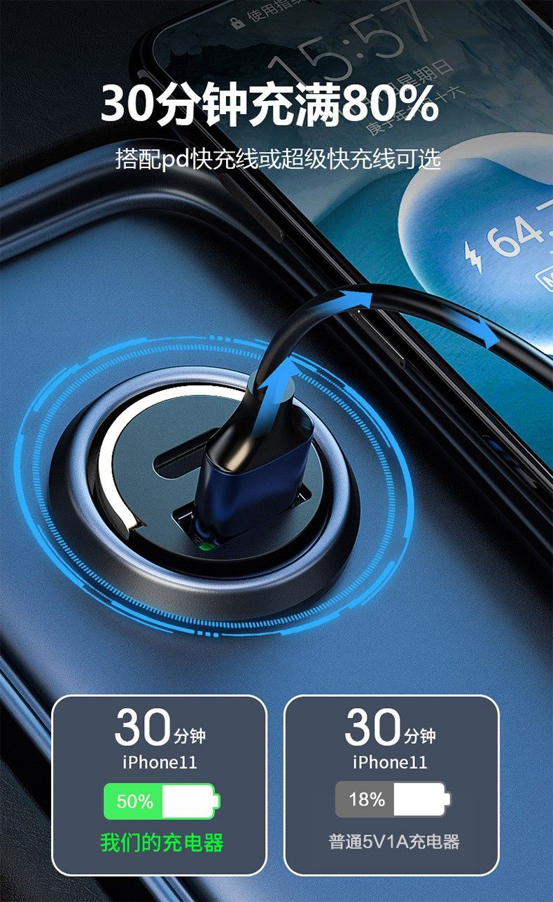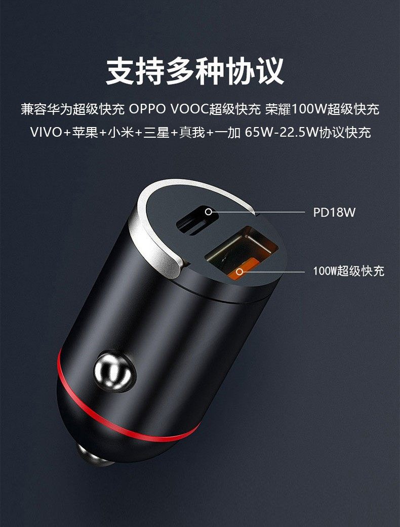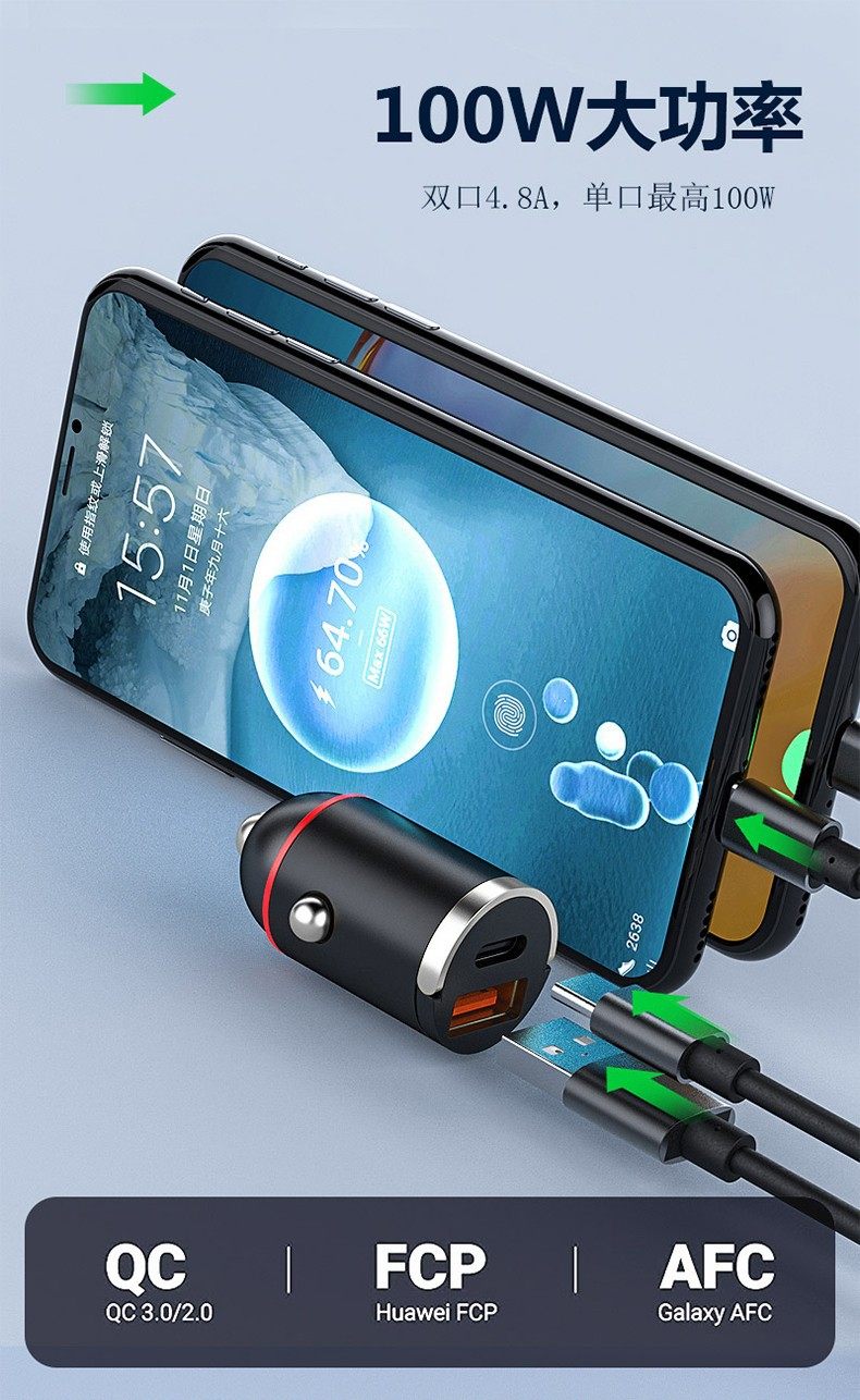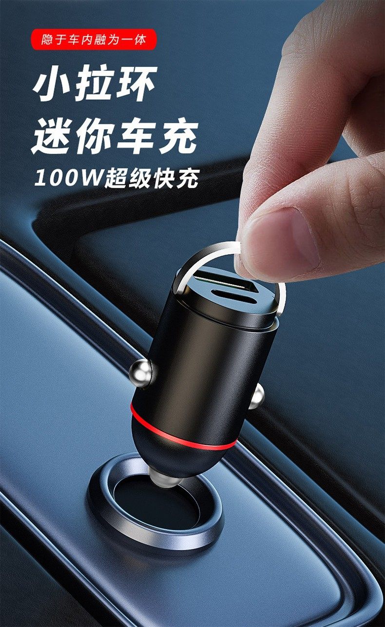 Newman car charger 100W mini pull ring car charger mobile phone super fast charge 100W car charger