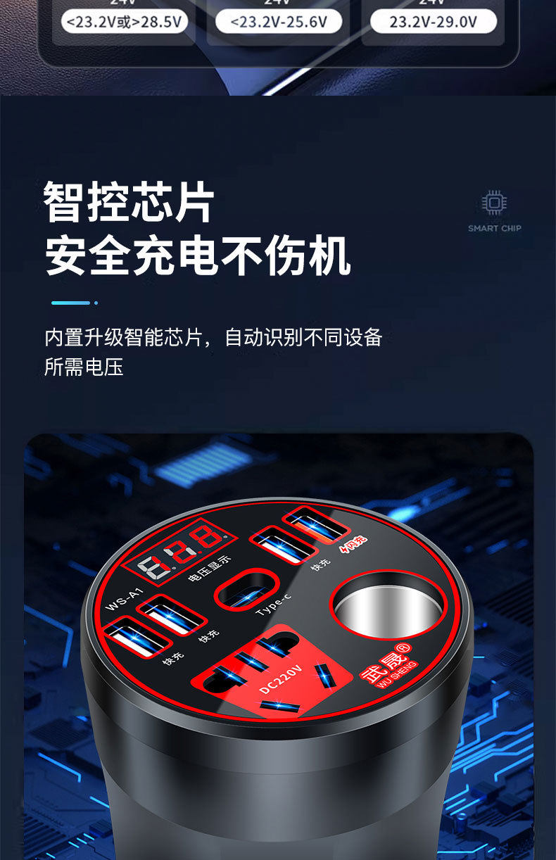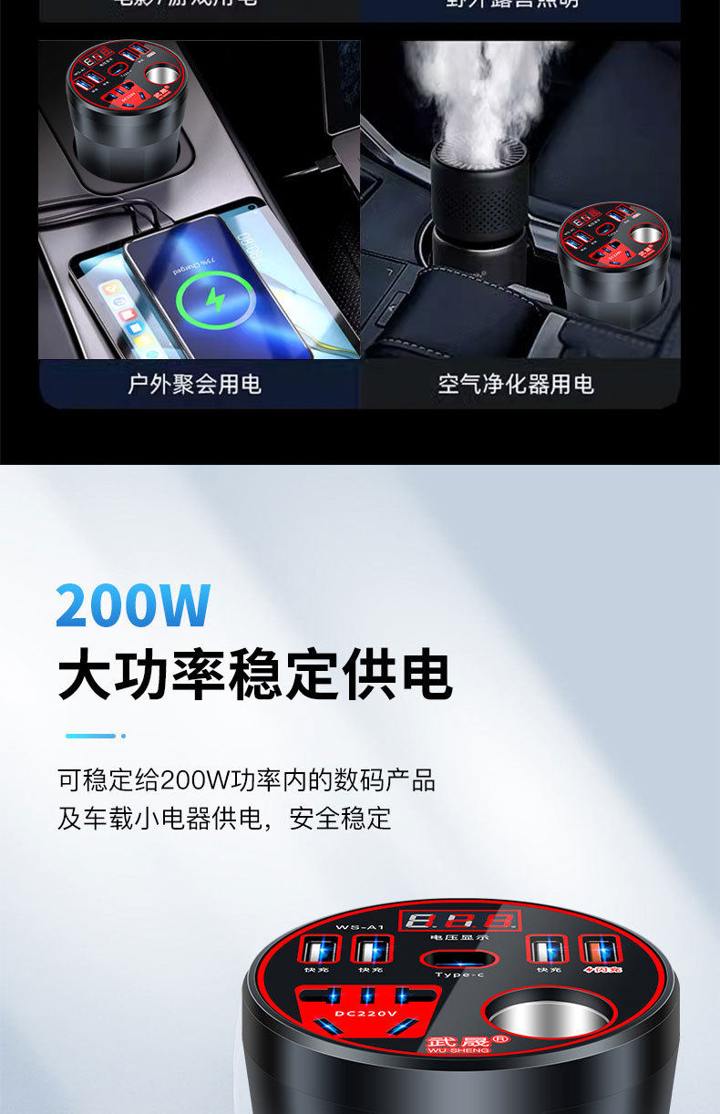 Car inverter 12V24V to 220V power converter multi-function car socket charger mobile phone fast charging