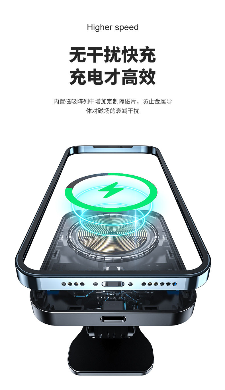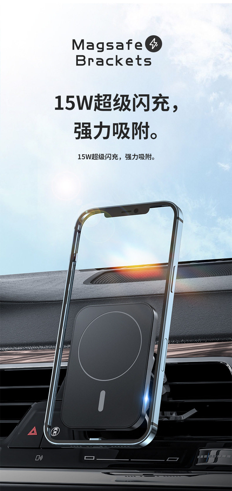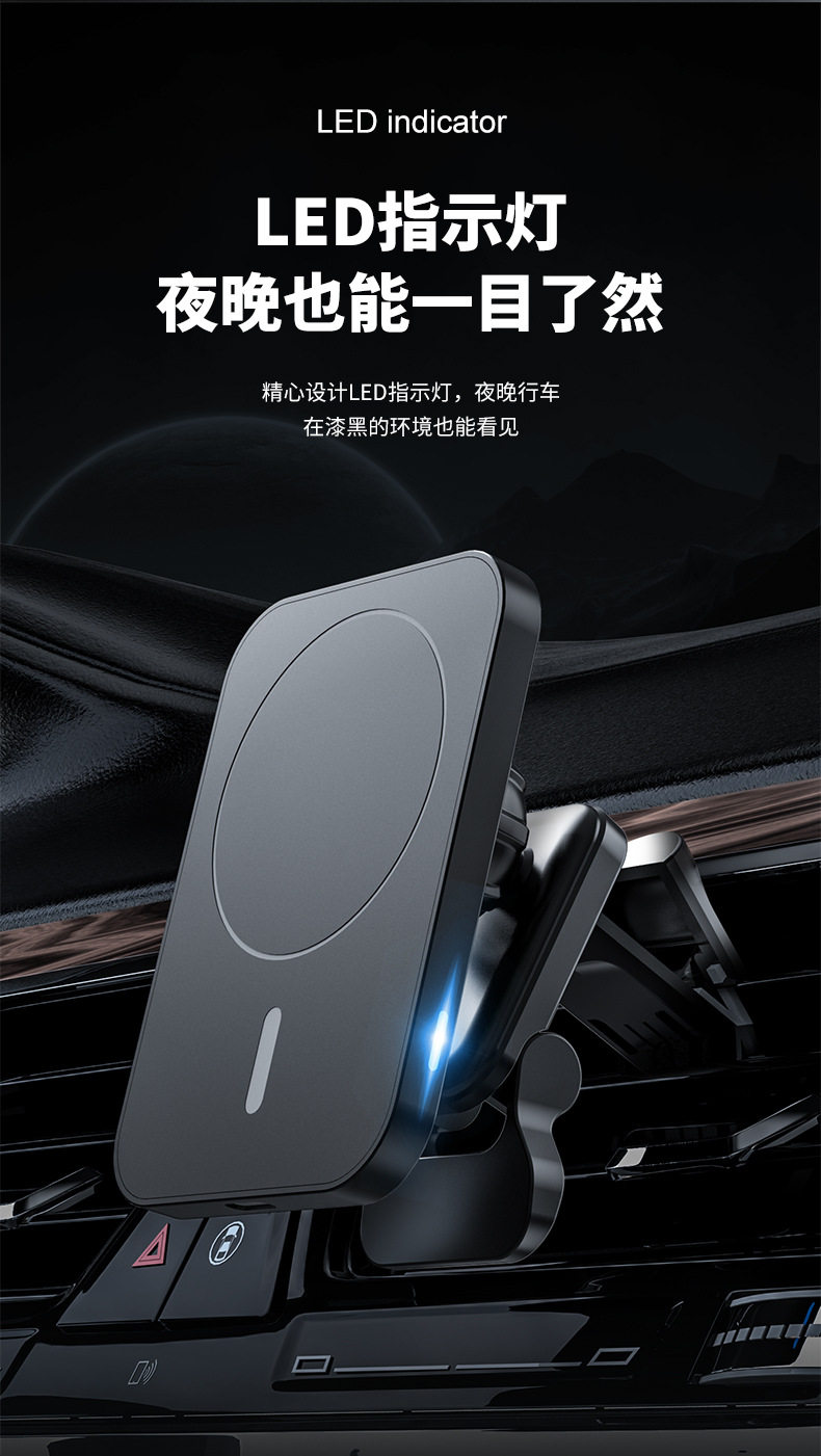Cross-border car air outlet magnetic suction mobile phone wireless charger car navigation smart phone bracket fast charging