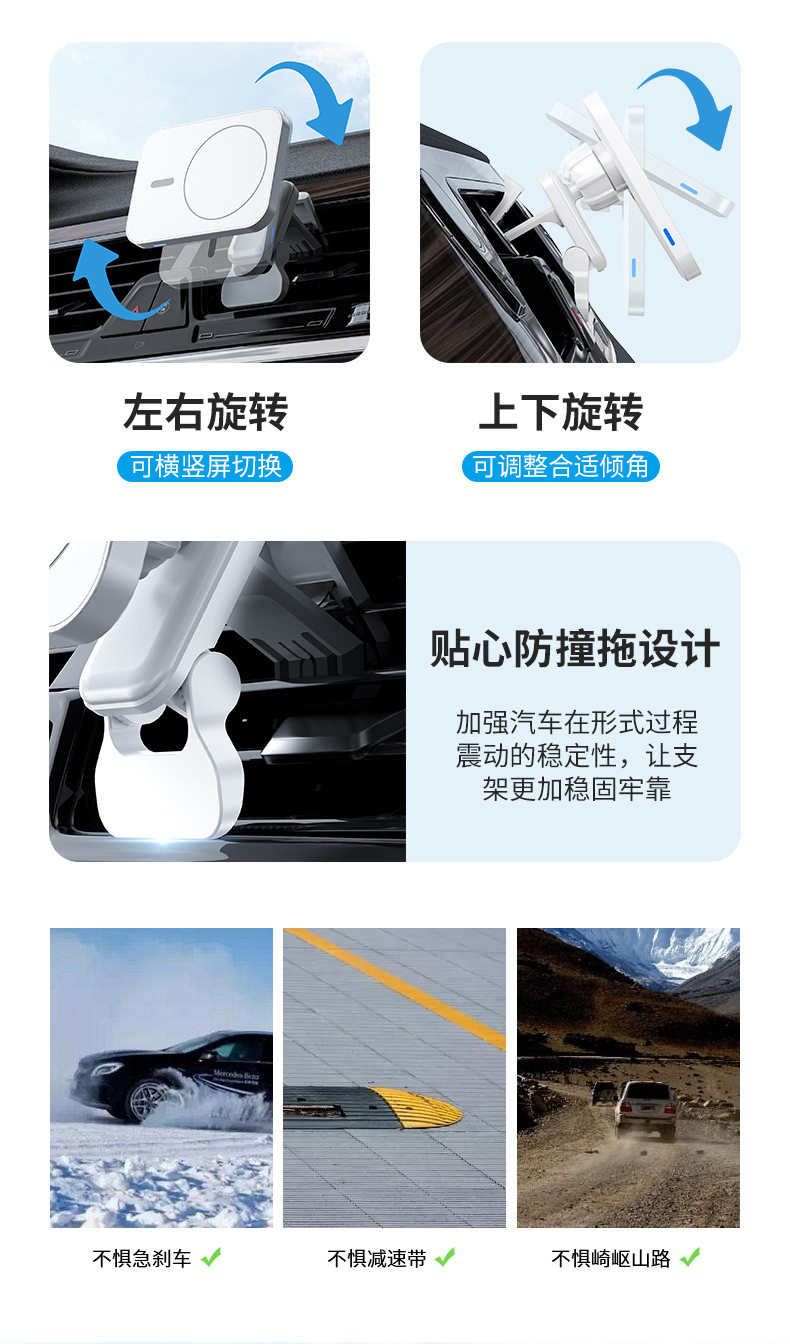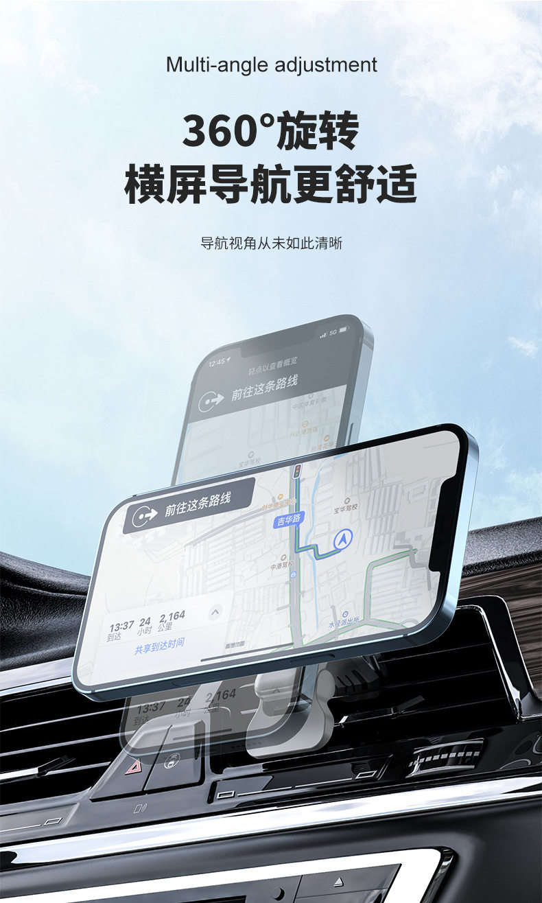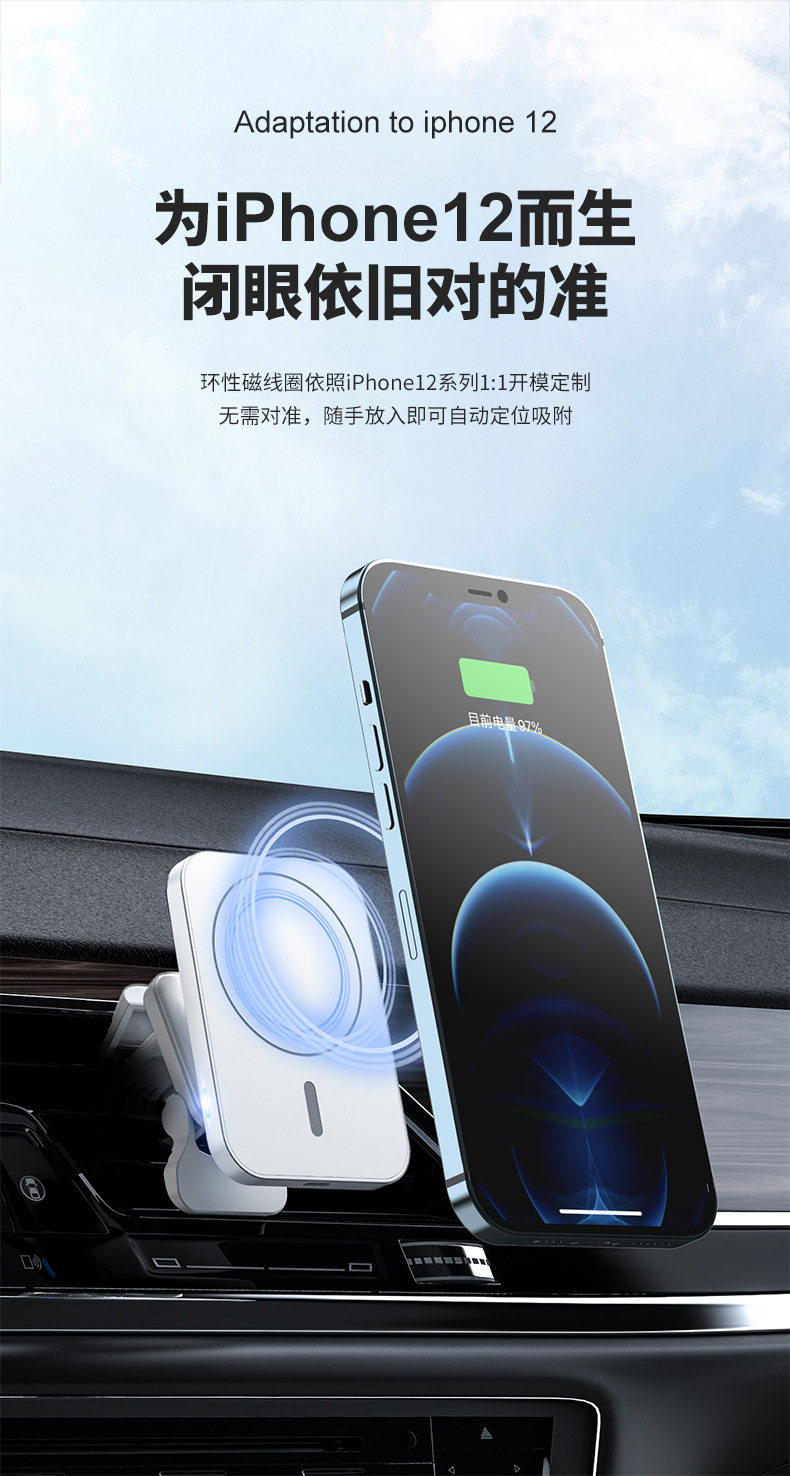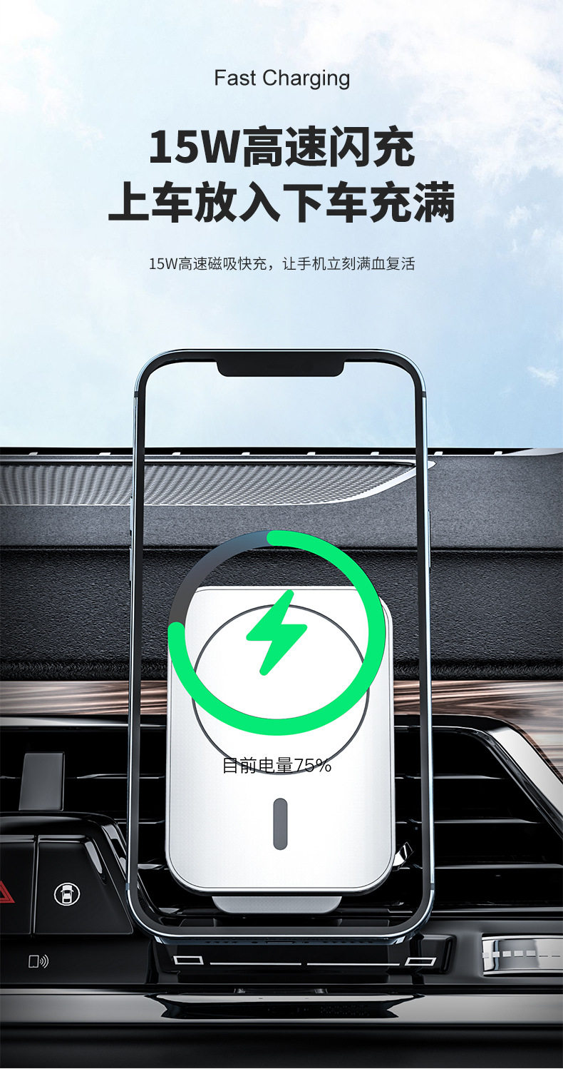 Cross-border car air outlet magnetic suction mobile phone wireless charger car navigation smart phone bracket fast charging