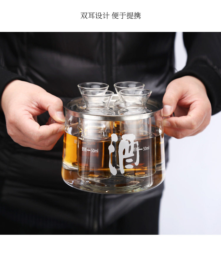 Mingshangde glass wine separator hot wine pot household Chinese wine warmer wine set yellow wine liquor wine cup set