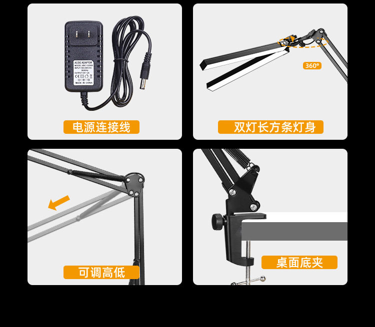 Popular American clip double-headed long arm table lamp work tattoo beauty office desktop LED eye protection folding table lamp