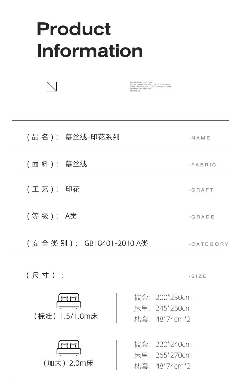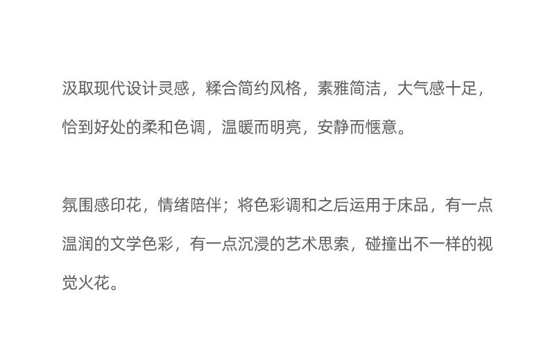 | Size specifications | 1.5m bed four-piece set/suitable for 200x230cm quilt core,1.8m bed four-piece set/suitable for 200x230cm quilt core,2.0m bed four-piece set/suitable for 220x240cm quilt core |
