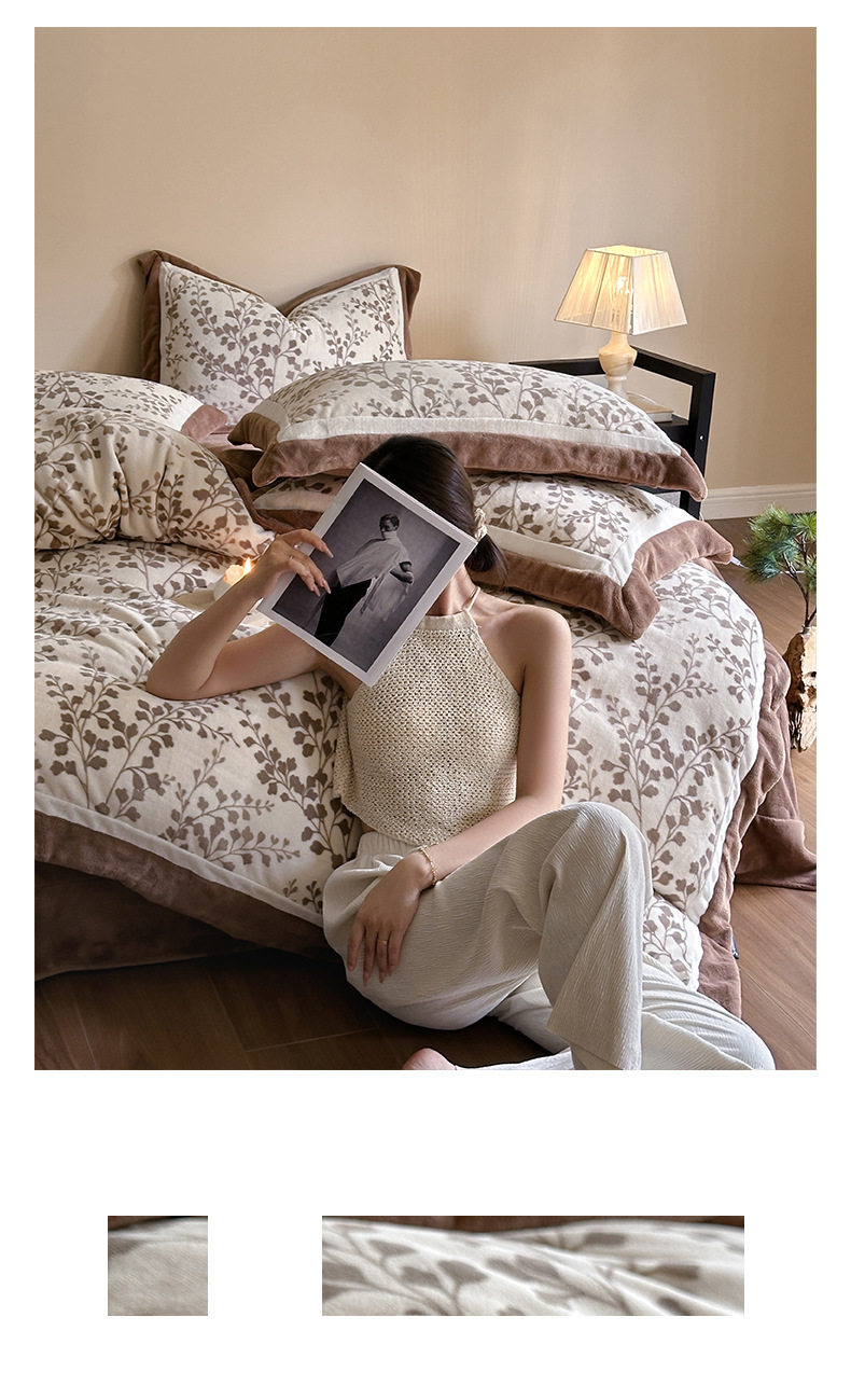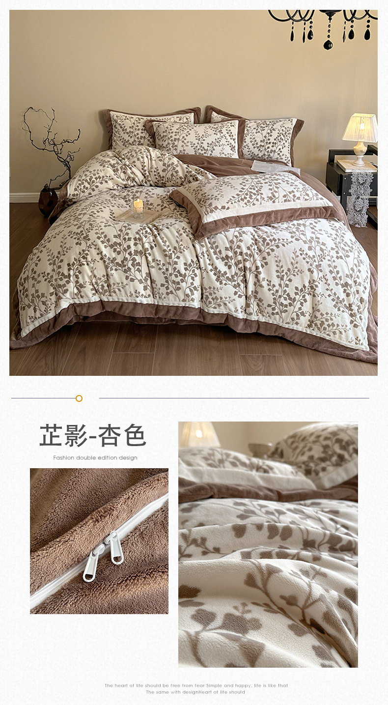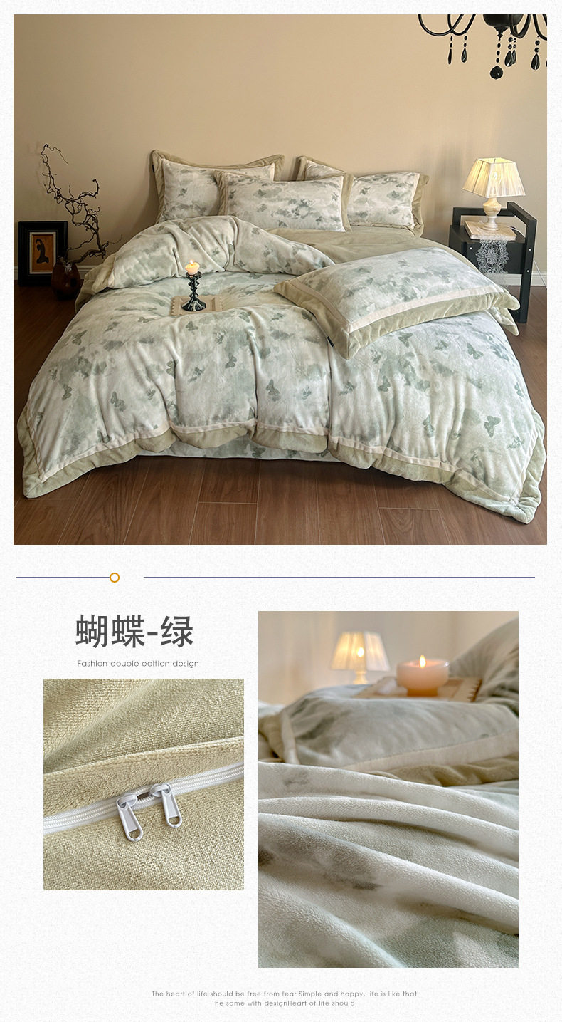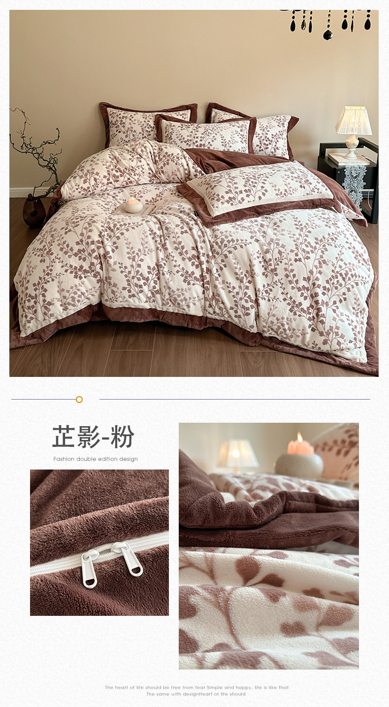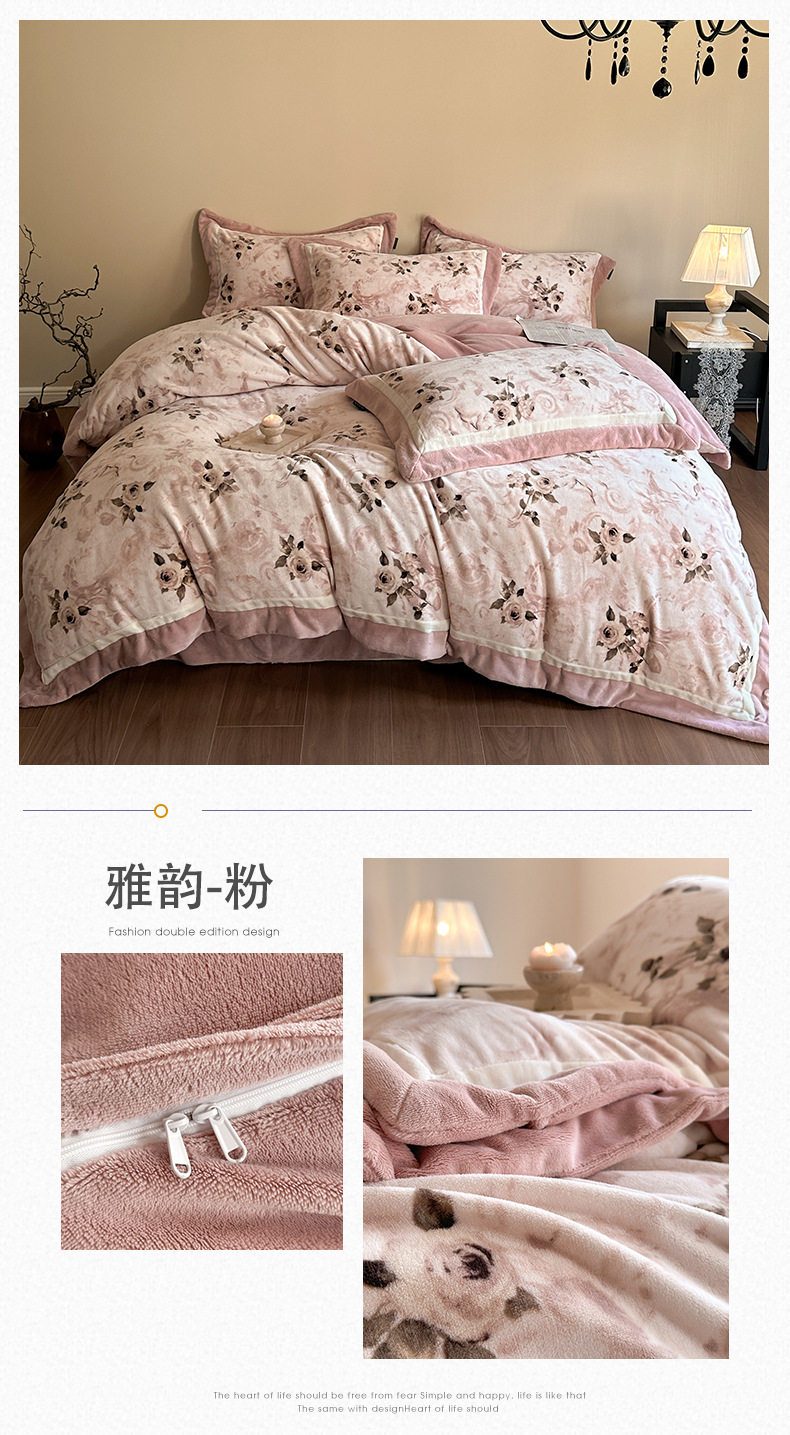 5.5kg Heavy │ Class a Thickeneded Milk Velvet Four-Piece Winter Warm Velvet Quilt Cover Coral Velvet Bedding