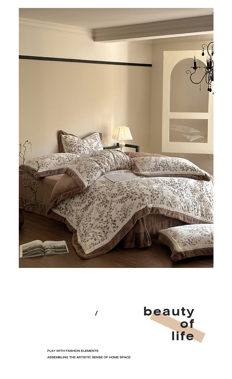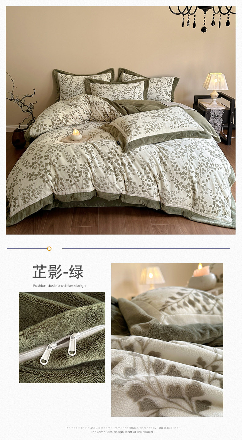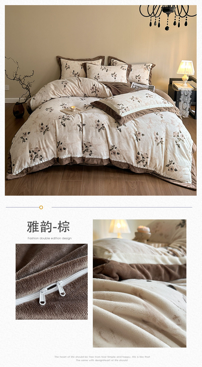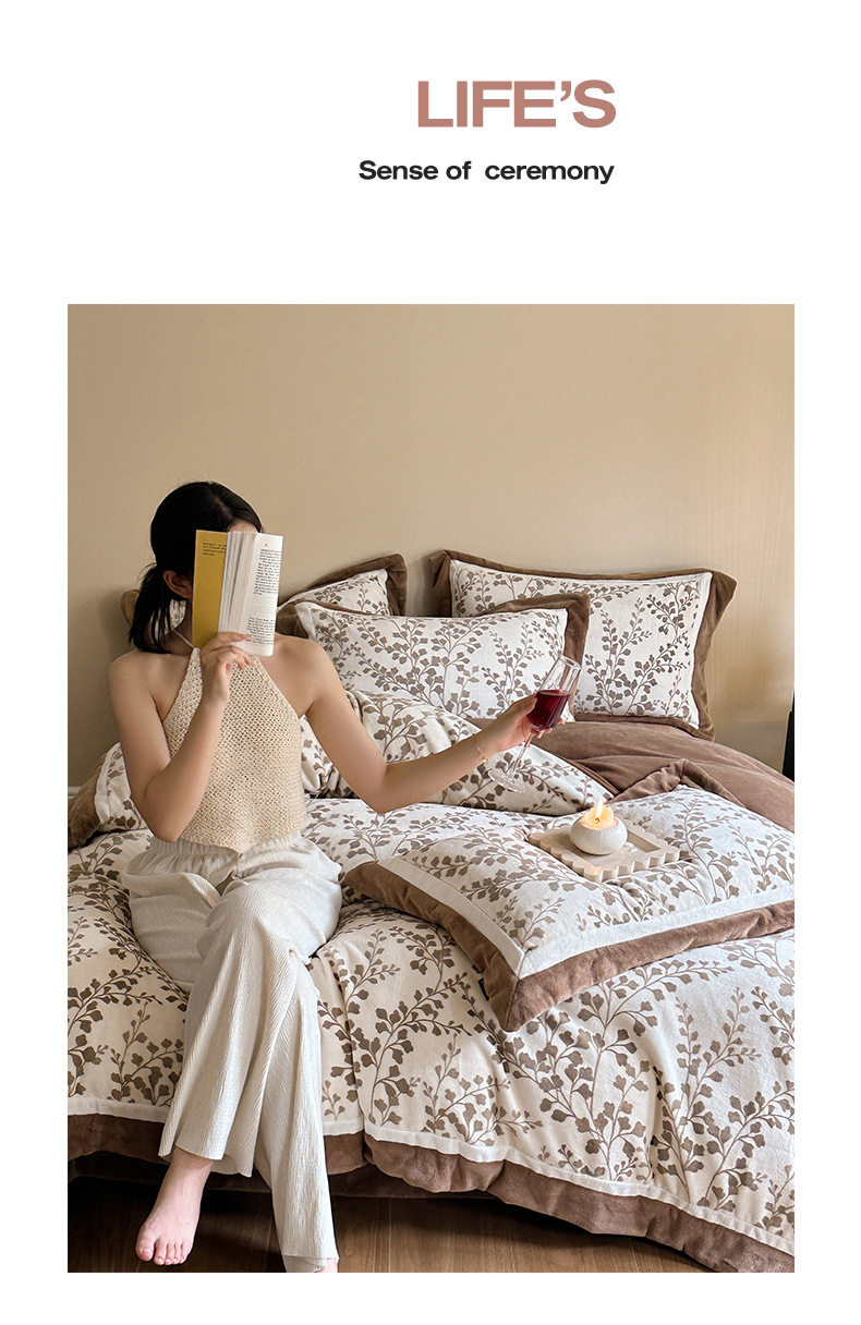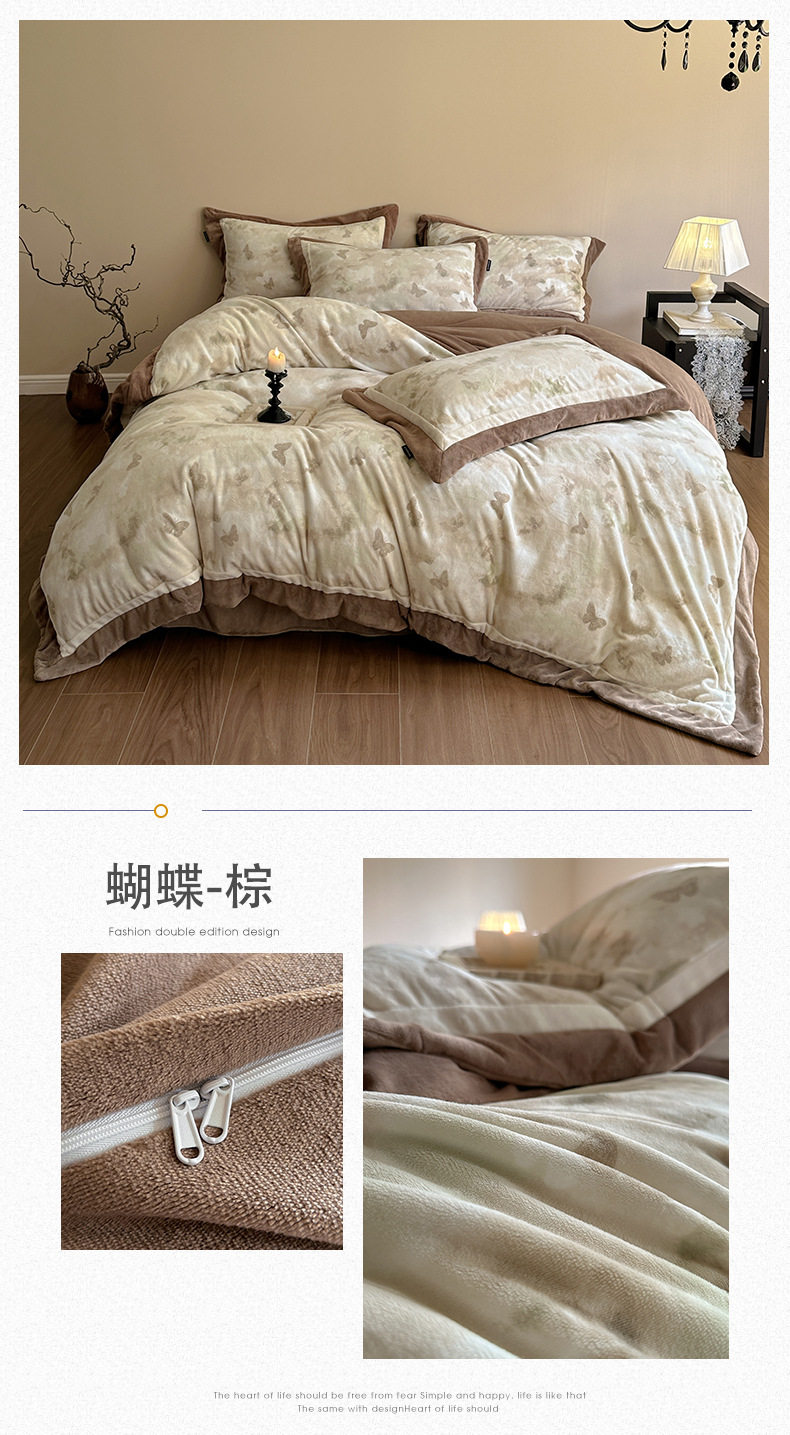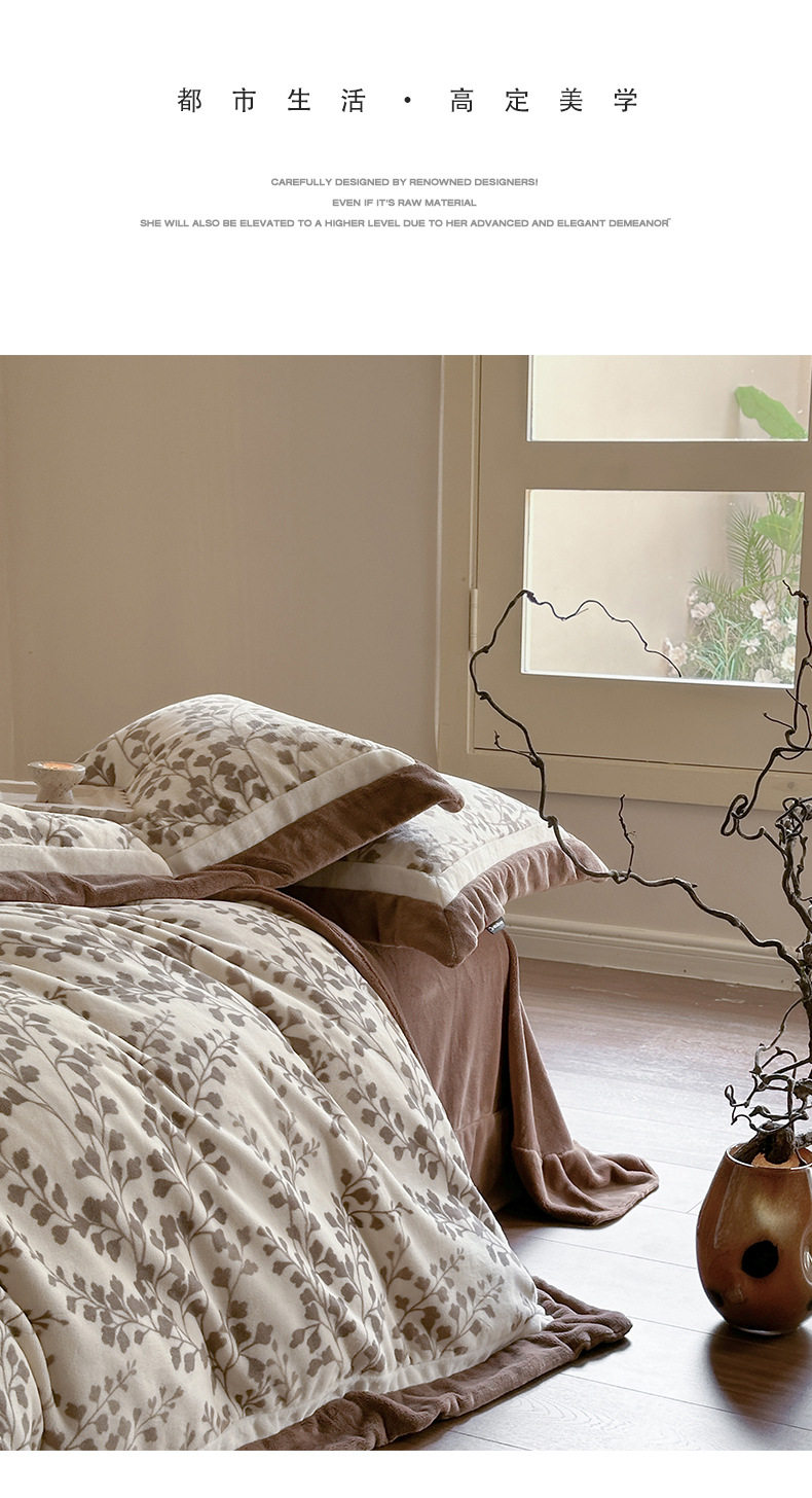 5.5kg Heavy │ Class a Thickeneded Milk Velvet Four-Piece Winter Warm Velvet Quilt Cover Coral Velvet Bedding