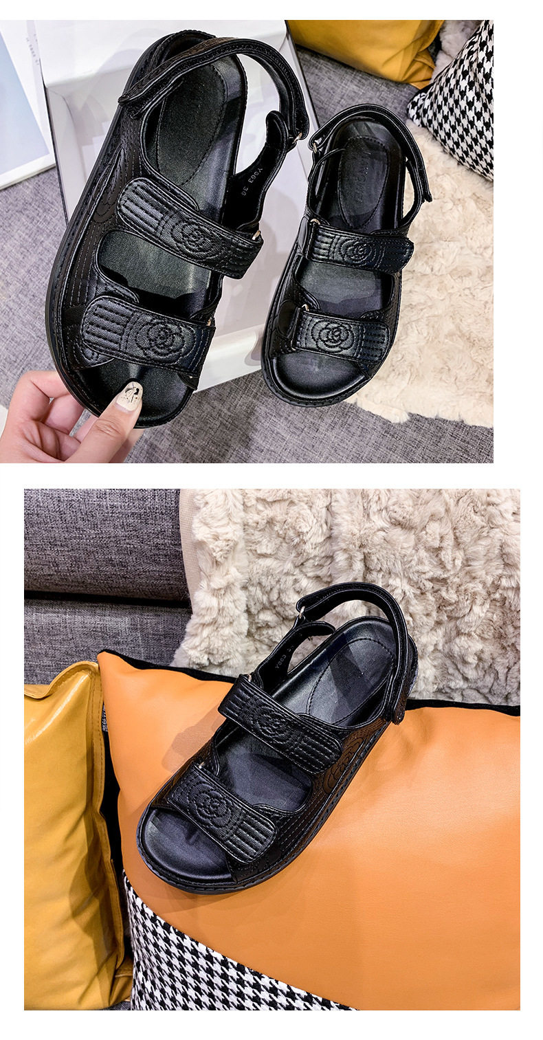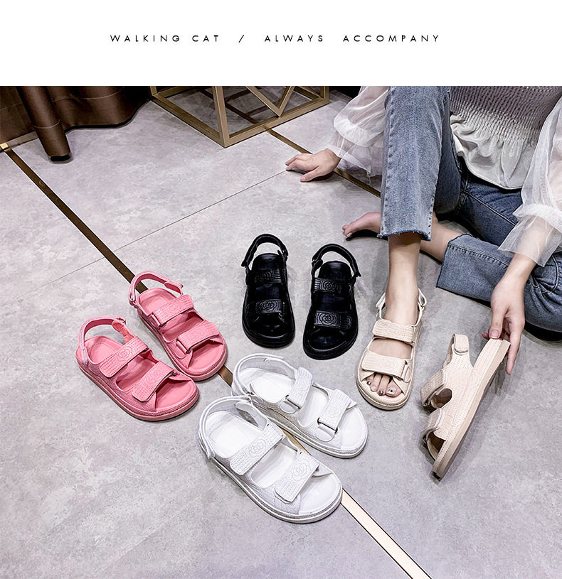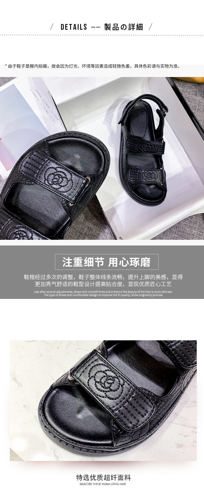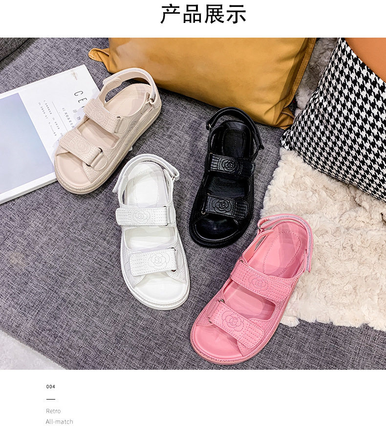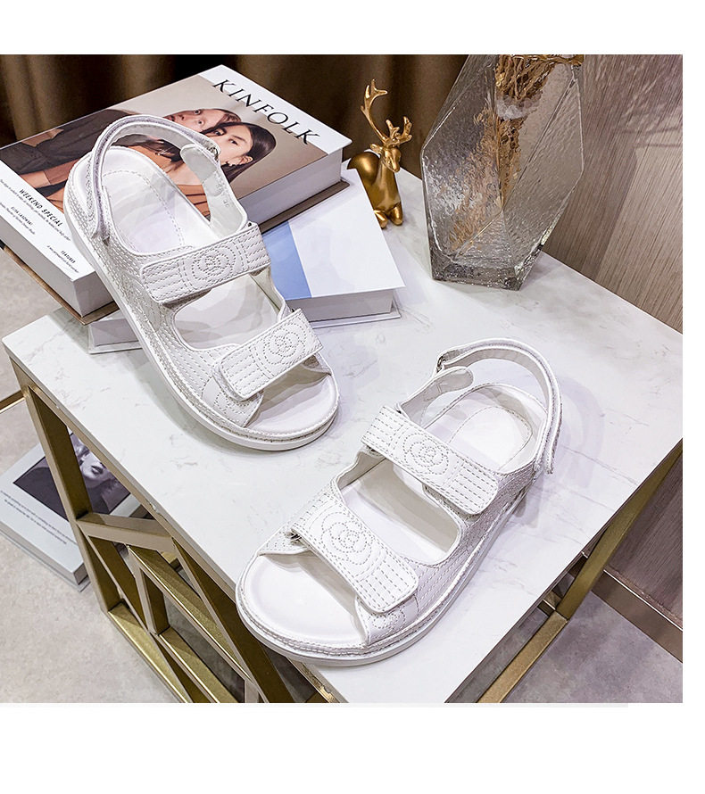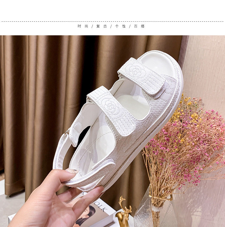 2024 New Chanel style Velcro sandals women's platform muffin fairy style beach shoes summer flat Roman sandals