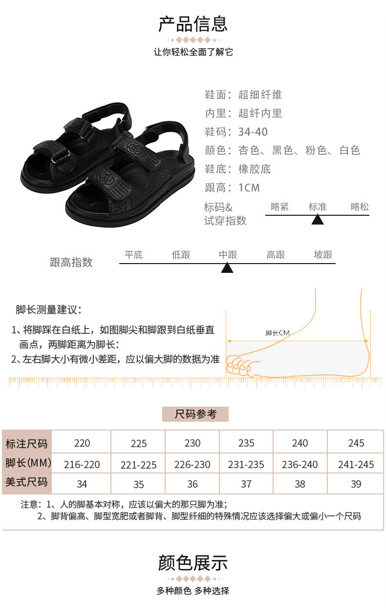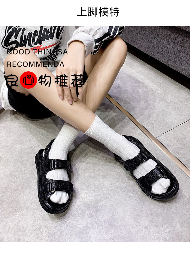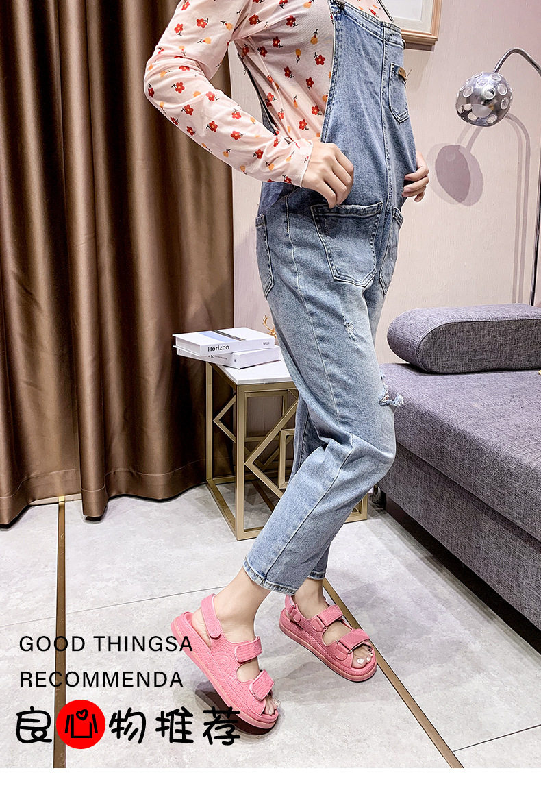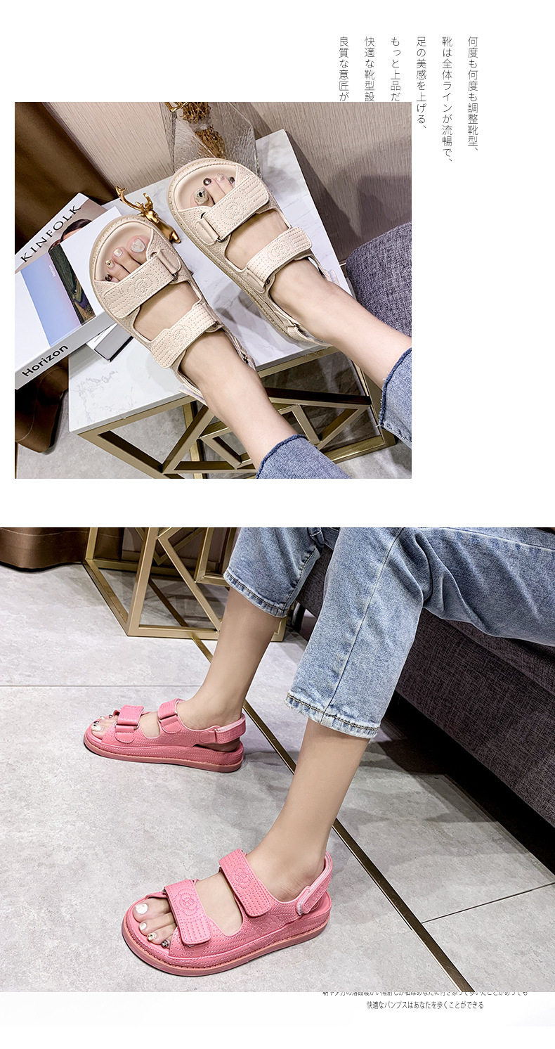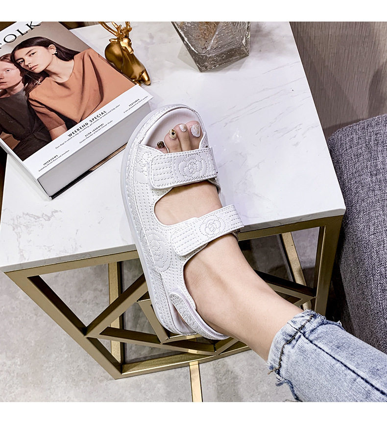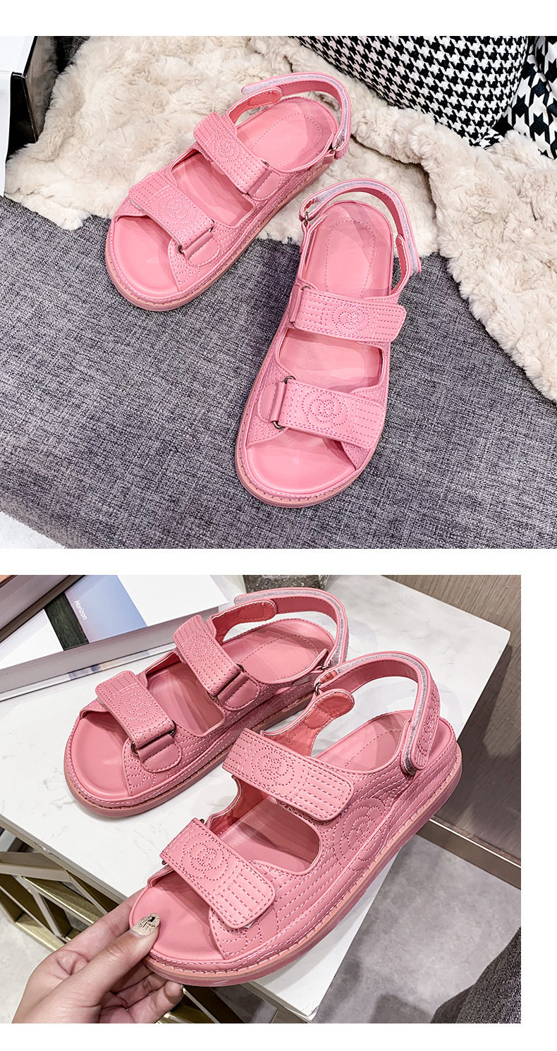 2024 New Chanel style Velcro sandals women's platform muffin fairy style beach shoes summer flat Roman sandals
