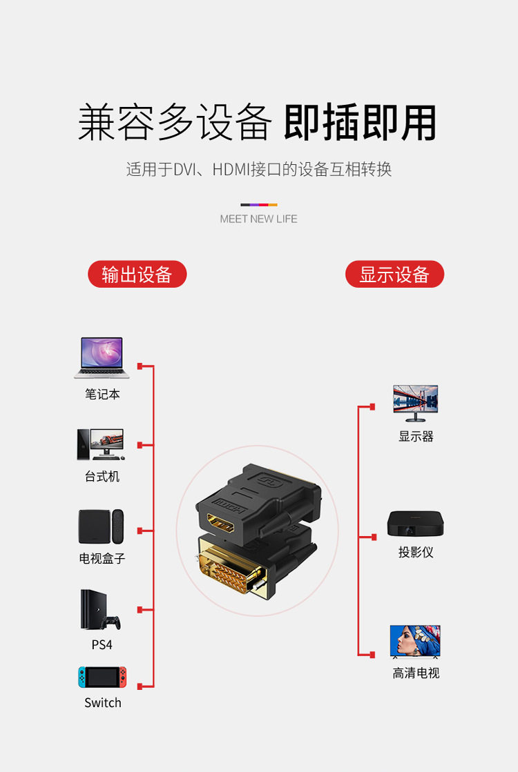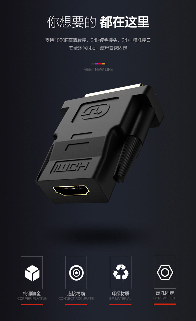 | Color | Brand direct sales (DVI24 +1 male to HDMI female) |