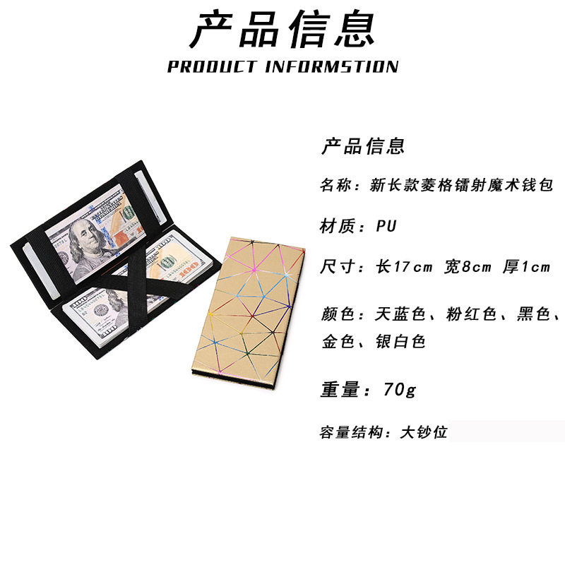 Cross-Border New Trendy Pu Diamond Laser Wallet Magic Wallet Large Capacity Clip Coin Purse Men's Wallet