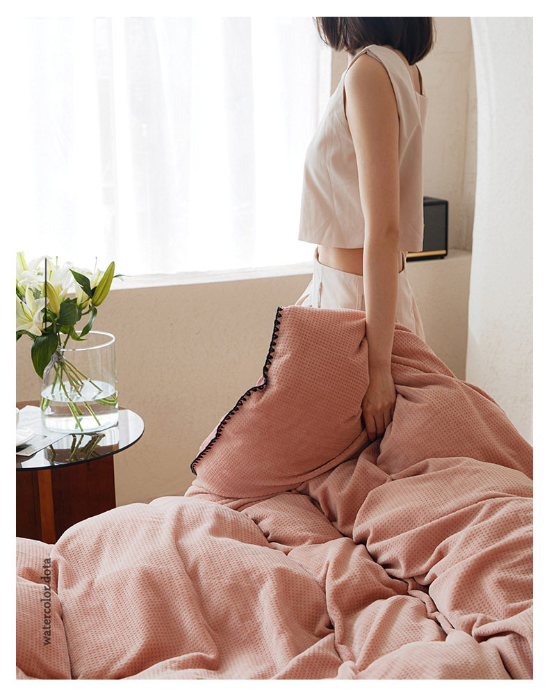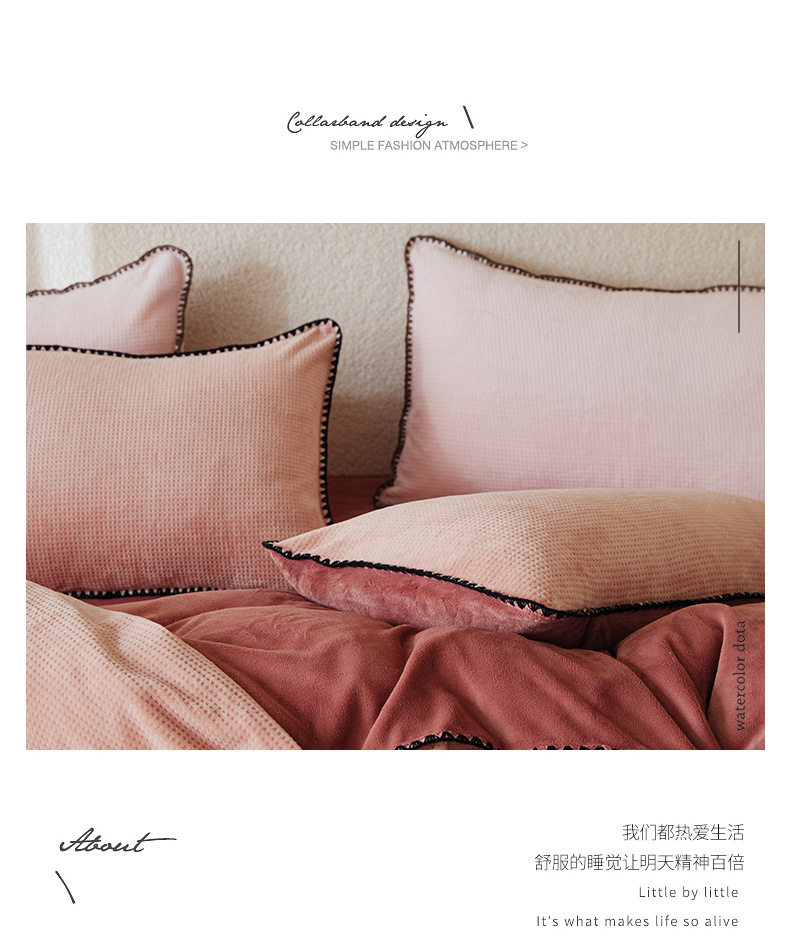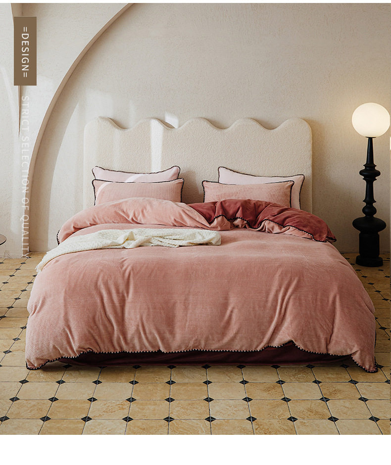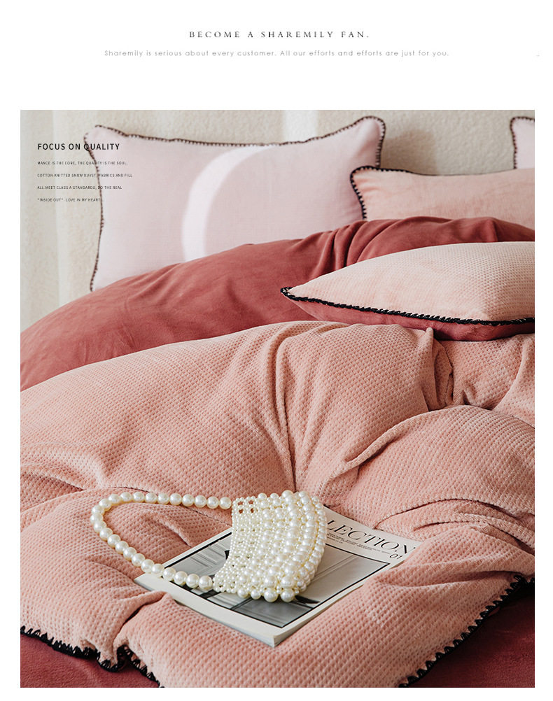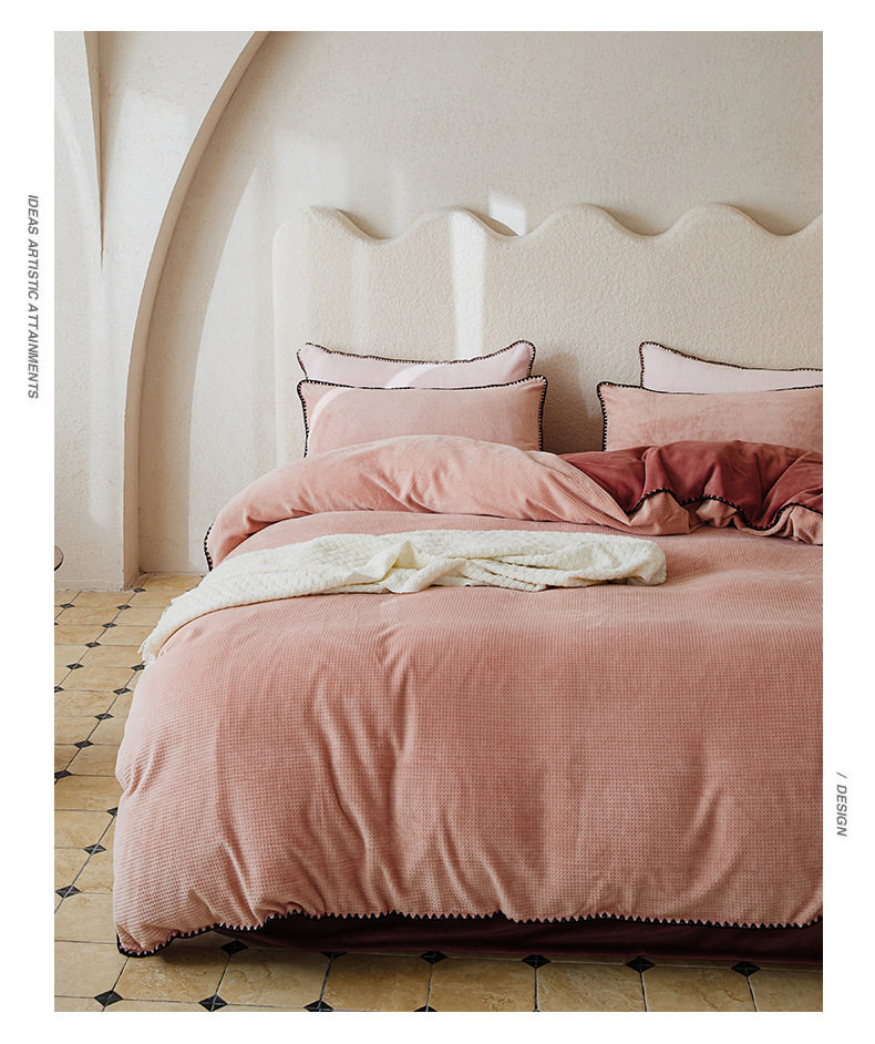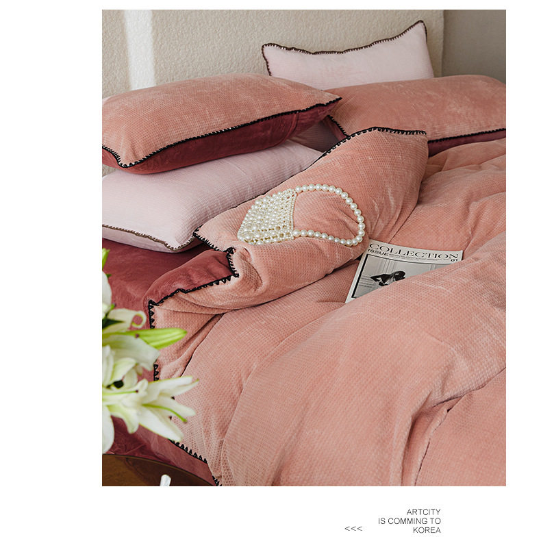 Simple solid color thickened milk velvet four-piece set winter warm coral velvet double-sided velvet bed sheet quilt cover fitted sheet