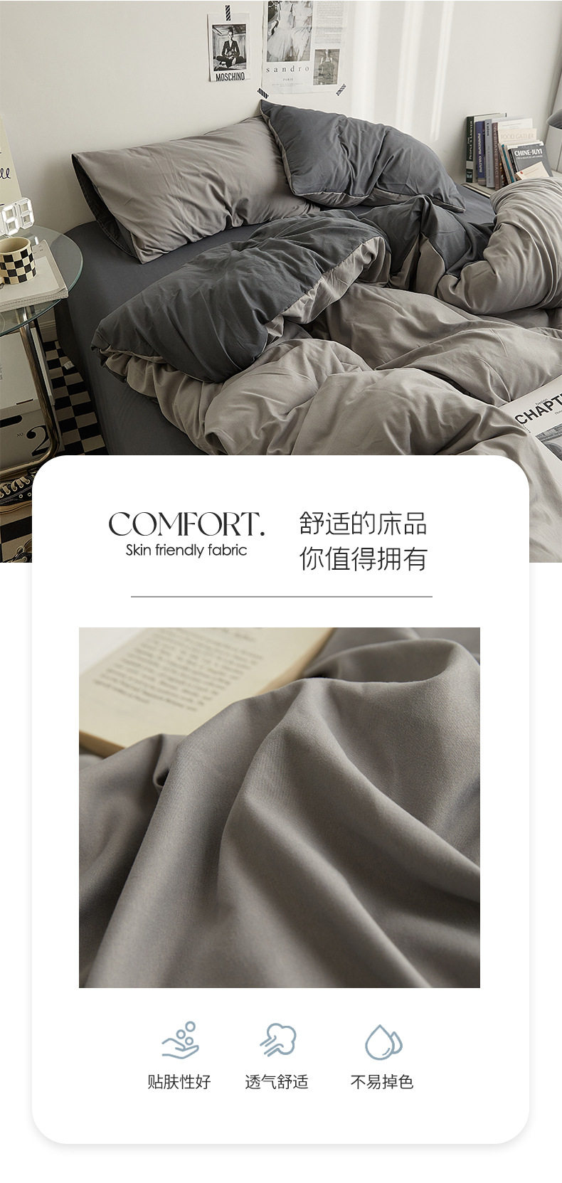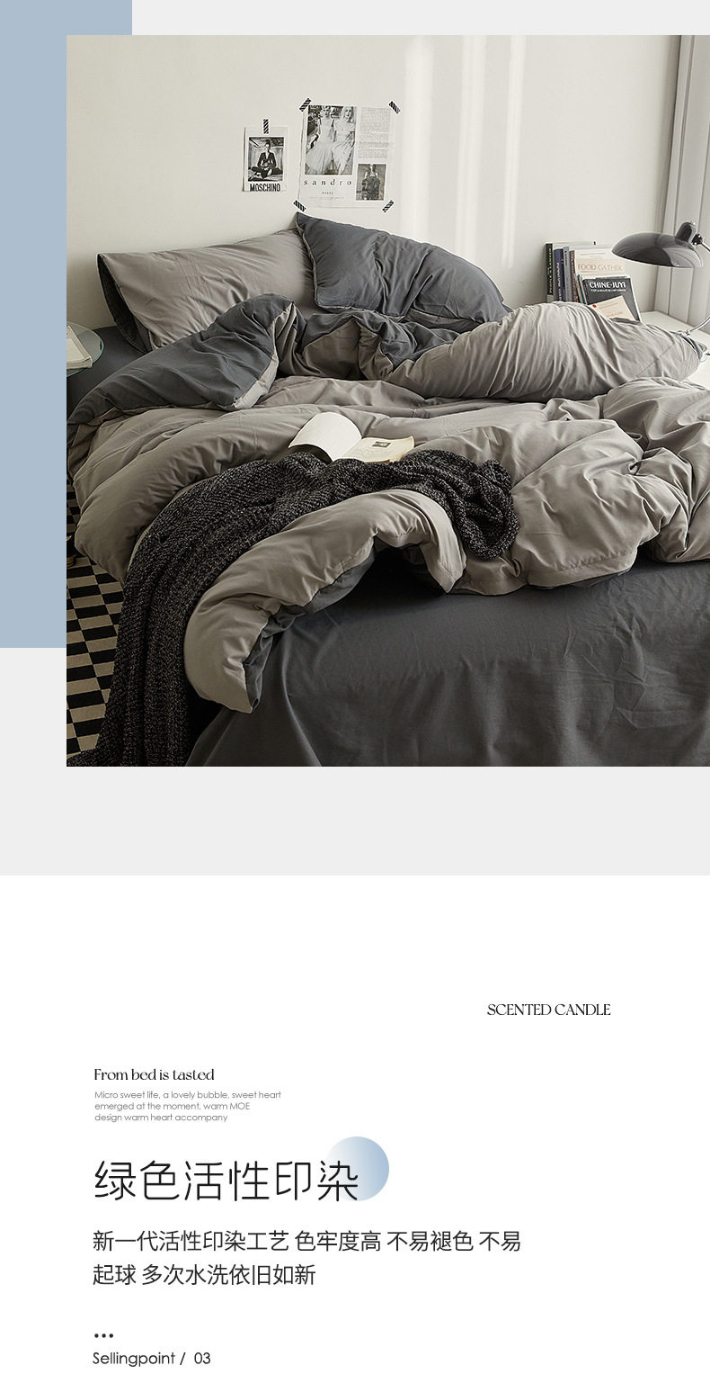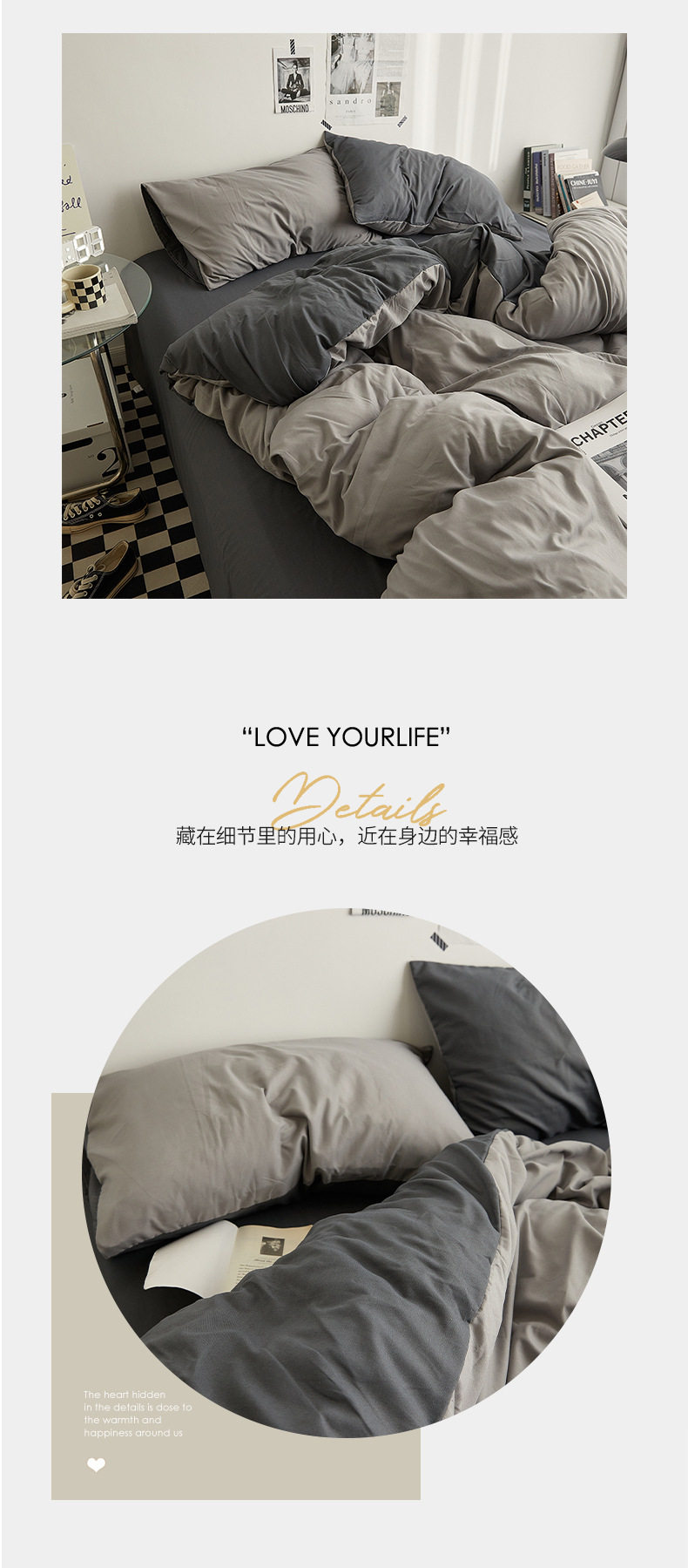 Ins style solid color four-piece set of water-washed cotton quilt cover sheets skin-friendly sanding student dormitory three-piece set of bedding wholesale