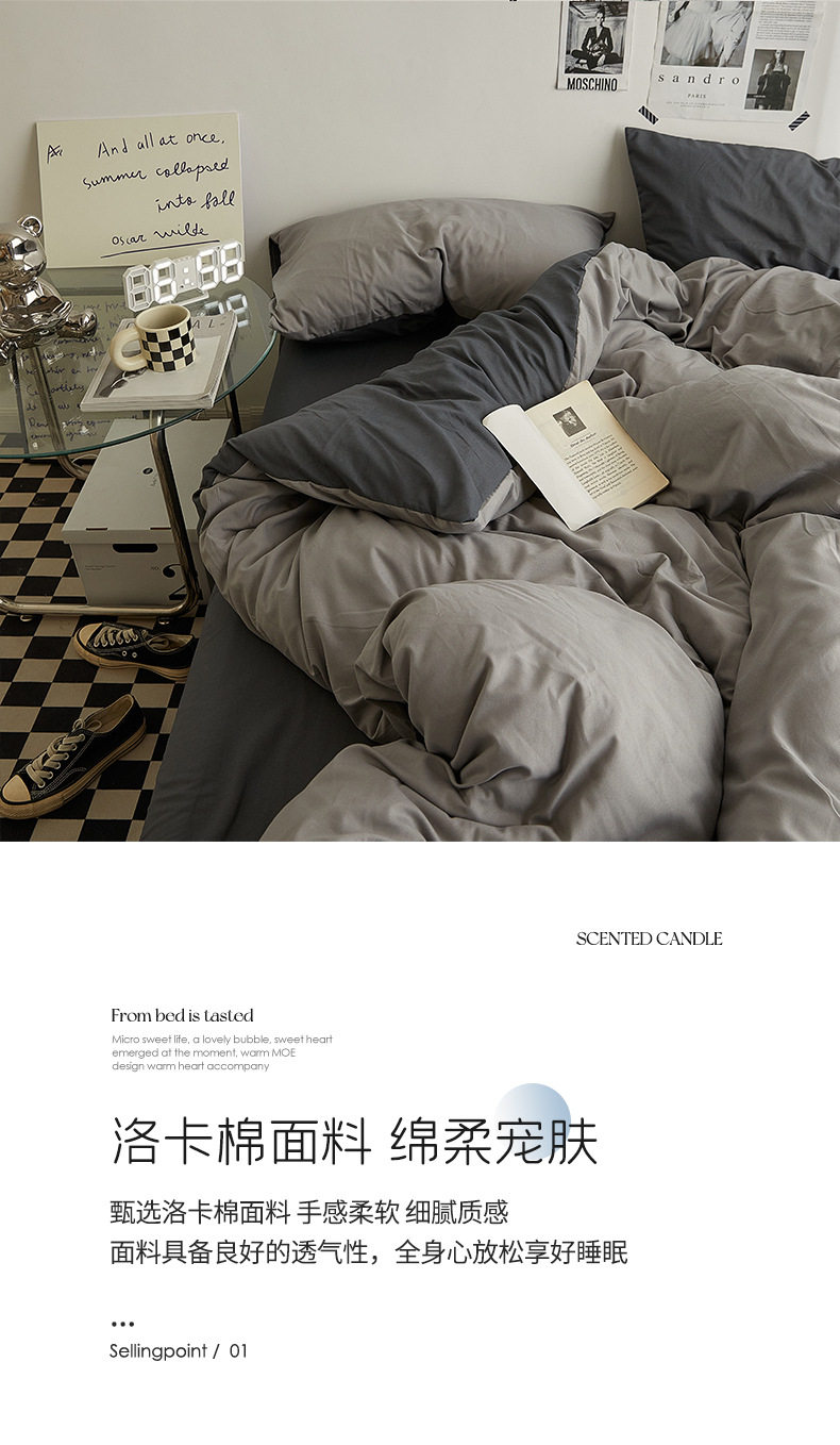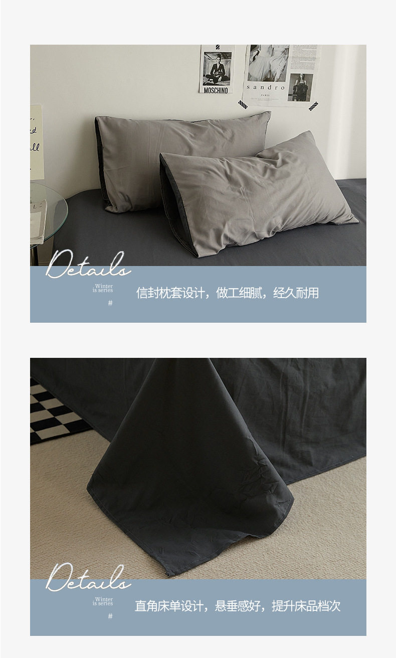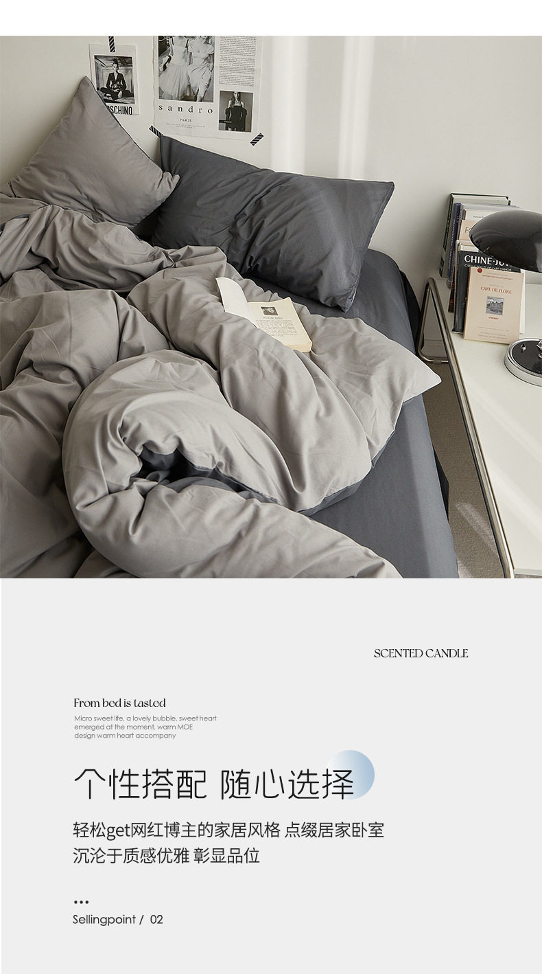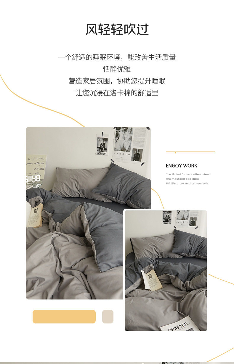 Ins style solid color four-piece set of water-washed cotton quilt cover sheets skin-friendly sanding student dormitory three-piece set of bedding wholesale
