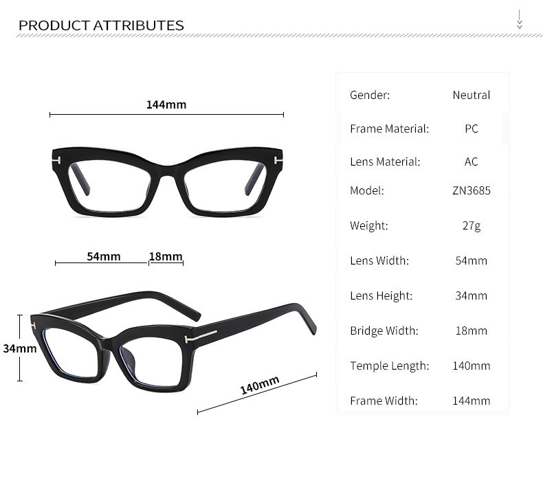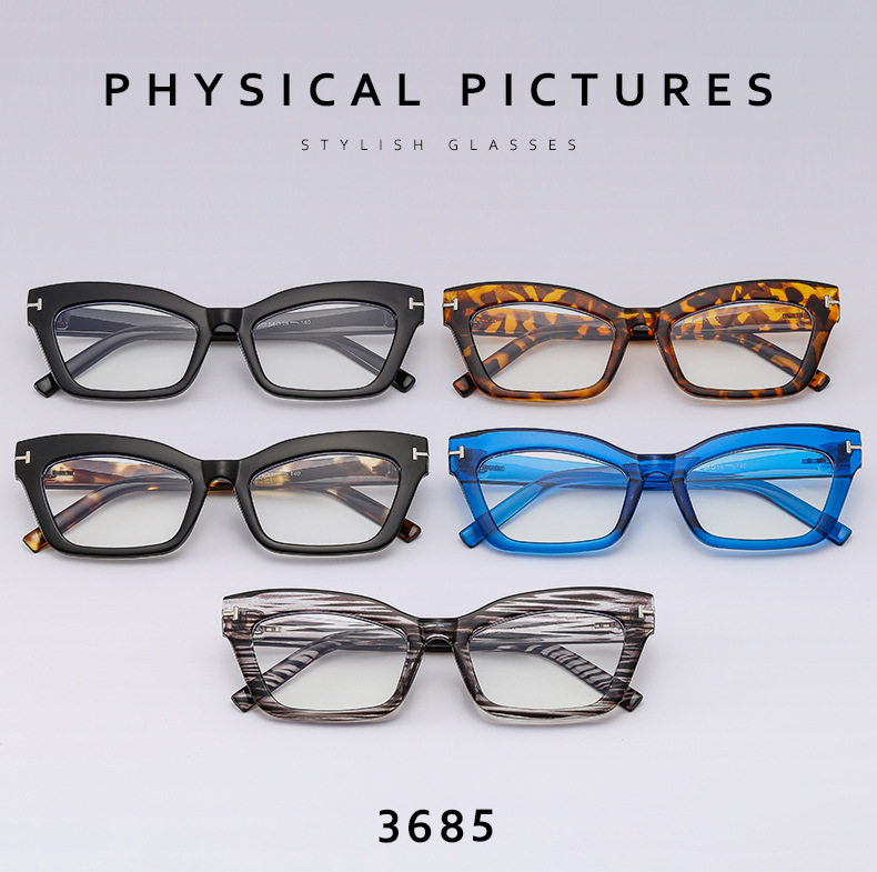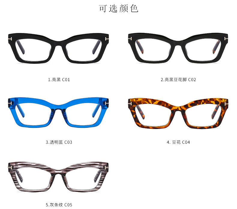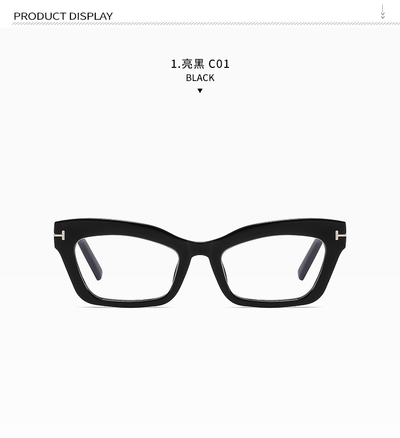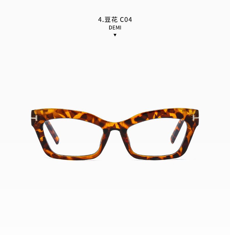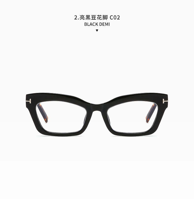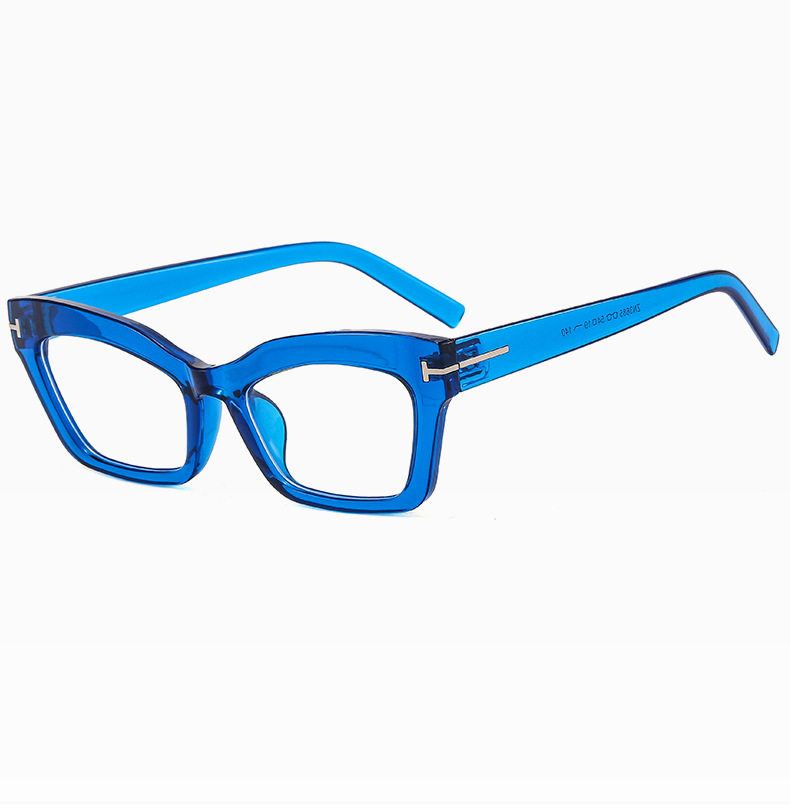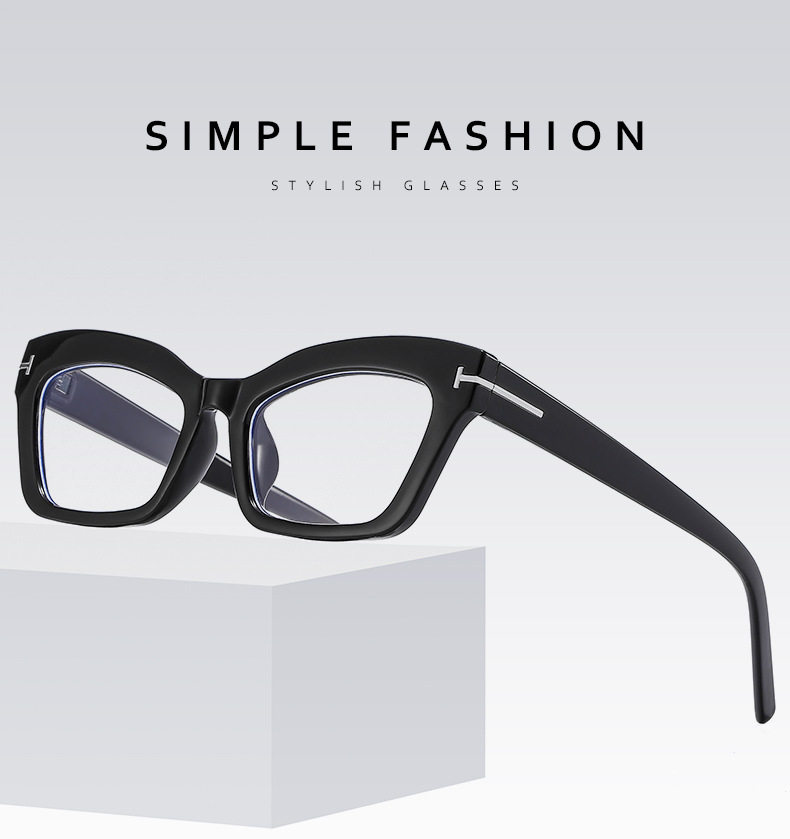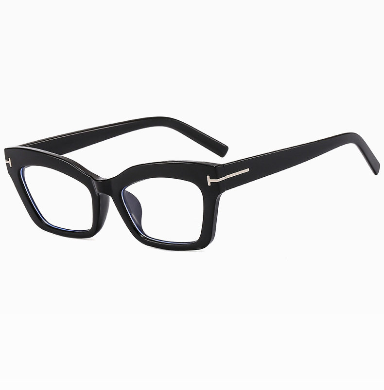 Cross-border Retro Thick Frame Men's and Women's Plain Cat's Eye Anti-blue Light Anti-ruffian Handsome Frame with Myopic T-shaped Tom Glasses