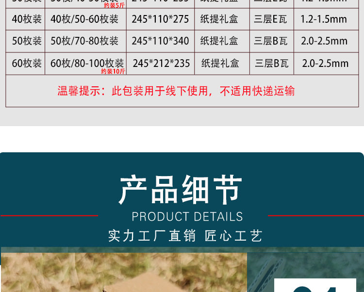 | Specification model | Pack of 10 pieces (excluding egg tray) *3-layer corrugated *yellow,Pack of 10 pieces (including egg tray) *3-layer corrugated *yellow,20 pieces (excluding egg tray) *3-layer corrugated *yellow,20 pieces (including egg tray) *3-layer corrugated *yellow,30 pieces (excluding egg tray) *3-layer corrugated *yellow,30 pieces (including egg tray) *3-layer corrugated *yellow,40 pieces (excluding egg tray) *3-layer corrugated *yellow,40 pieces (including egg tray)*3 layers of corrugated*yellow,50 pieces (excluding egg tray) *3-layer corrugated *yellow,50 pieces (including egg tray) *3-layer corrugated *yellow,Pack of 60 pieces (excluding egg tray) *3-layer corrugated *yellow,60 pieces (including egg tray) *3-layer corrugated *yellow |