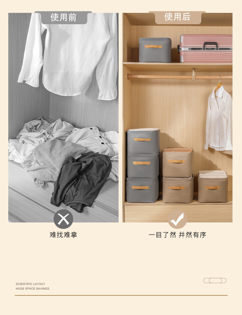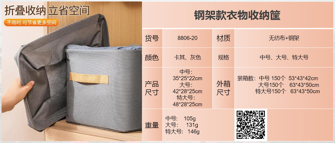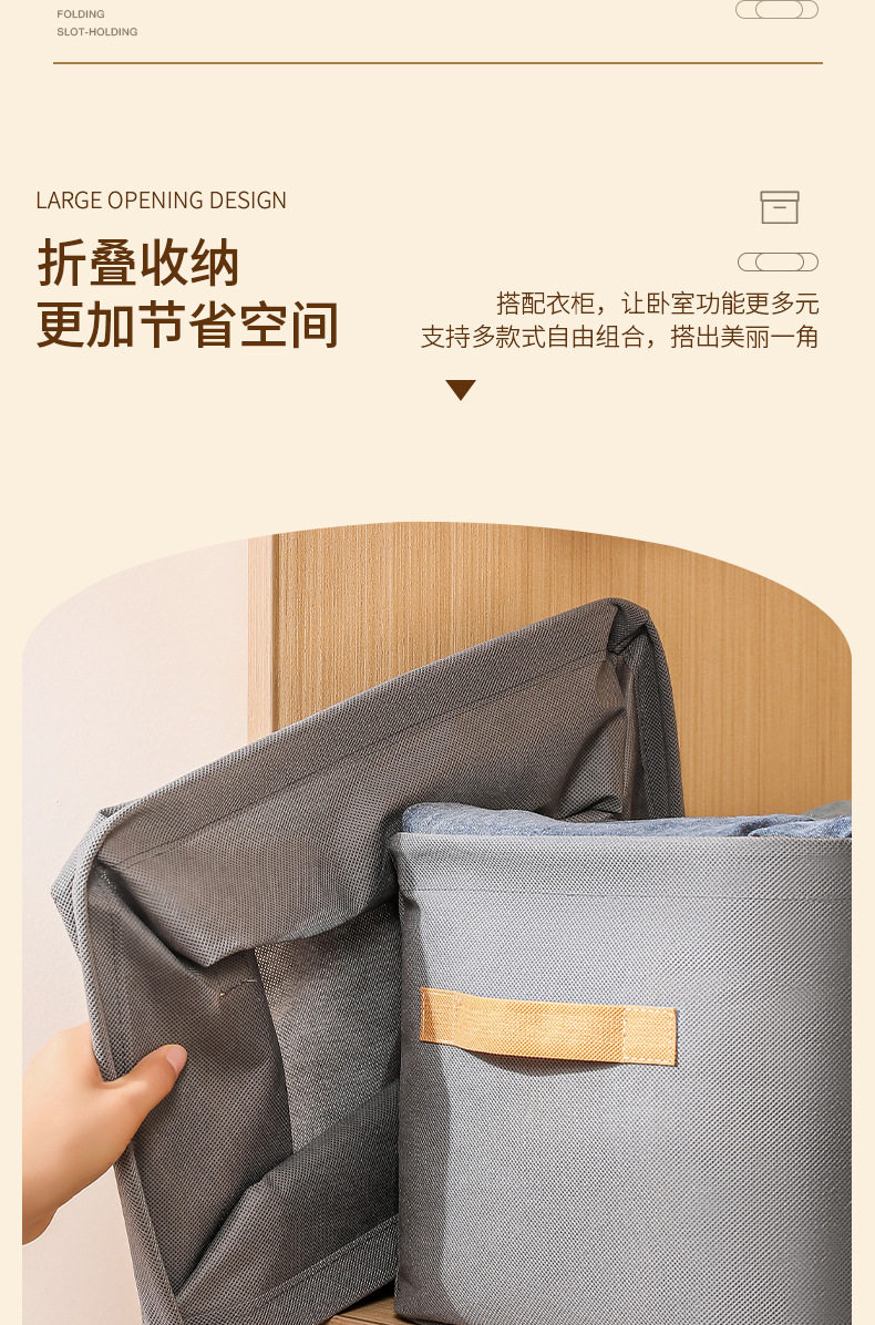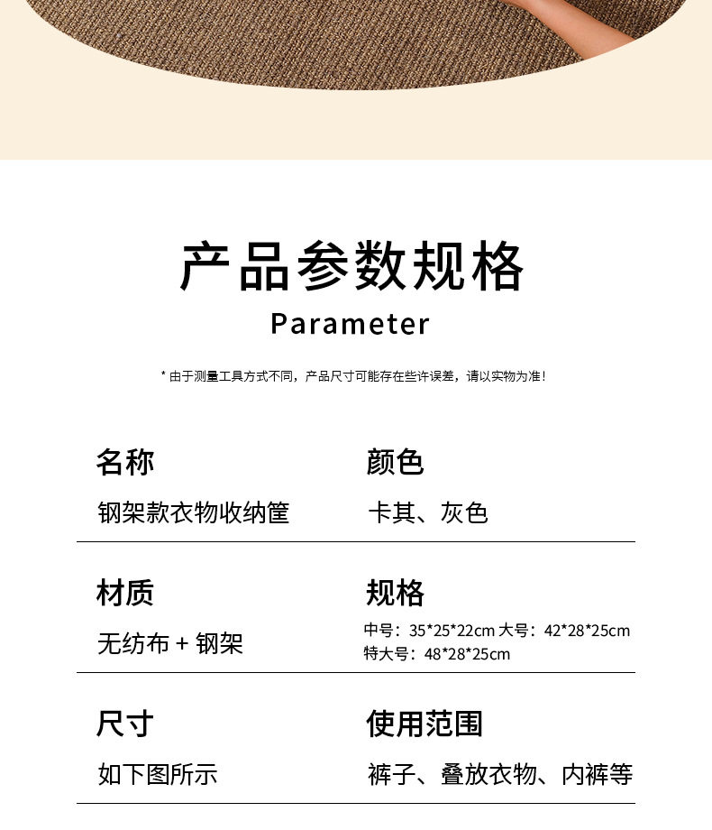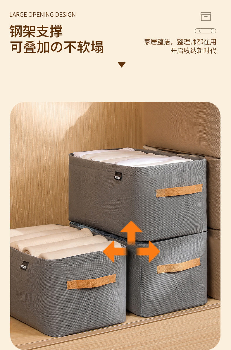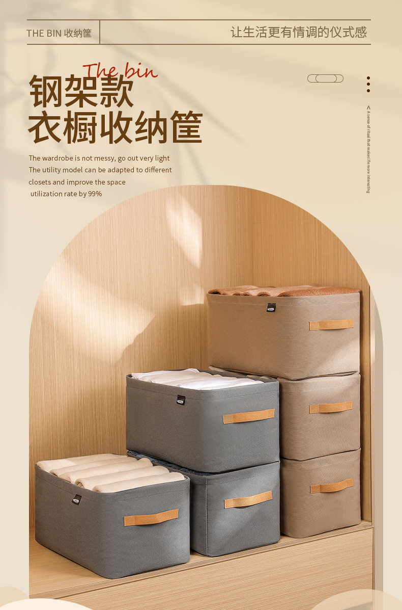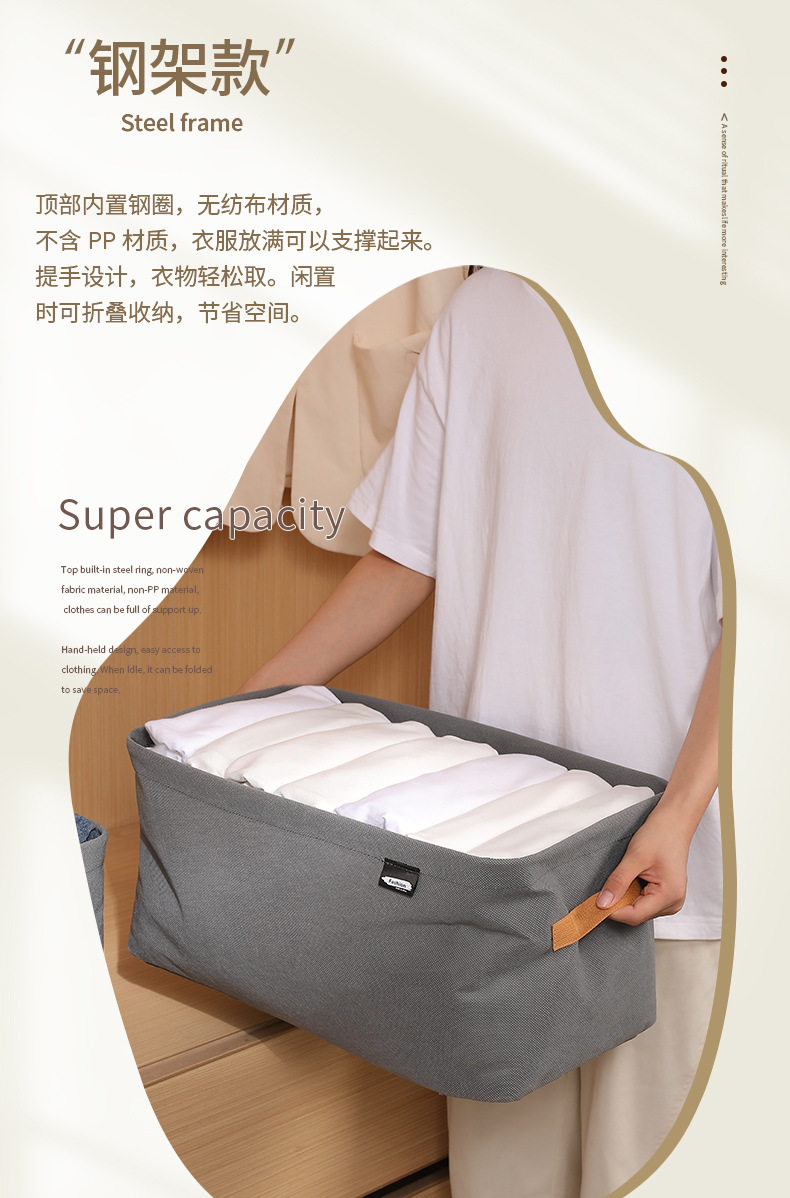 Steel Ring Clothing Storage Basket, Foldable Storage Box, Wardrobe Drawer-Style Dustproof Non-Woven Fabric Pants Storage Box for Clothes