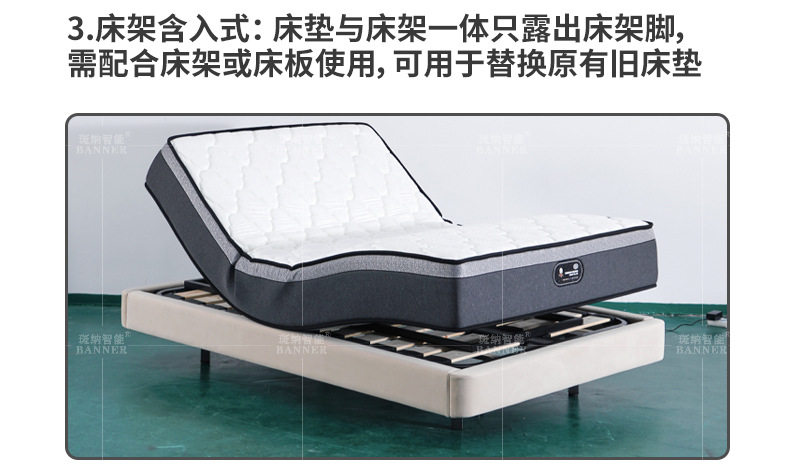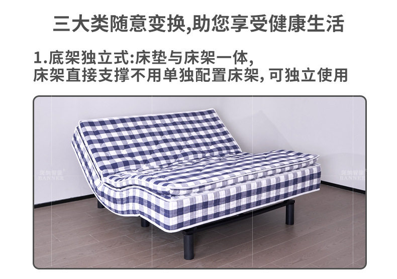 | Color | Smart bed frame (applicable to customer's own mattress),Supporting smart mattress (applicable mattress and bedstead integrated),Smart mattress (suitable for matching with row frame or bed board) |