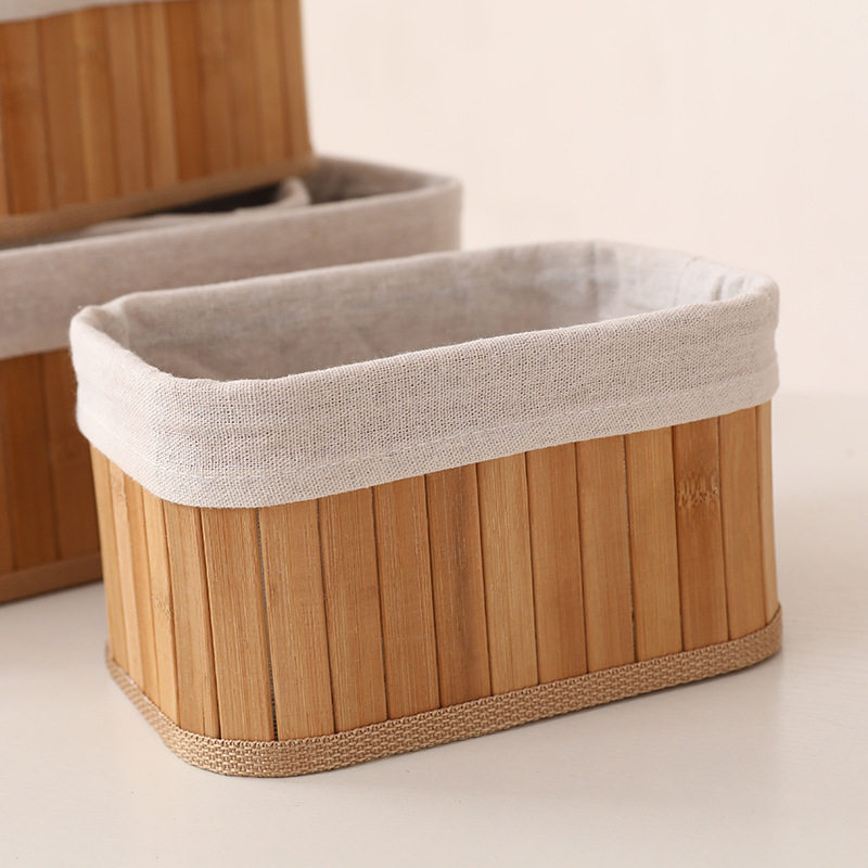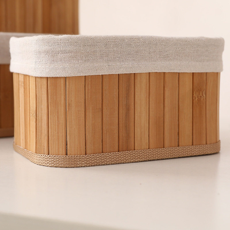 Factory in stock Pastoral Household Bamboo Storage Basket Desktop Cosmetics Storage Box Living Room Dirty Clothes Basket Ornaments