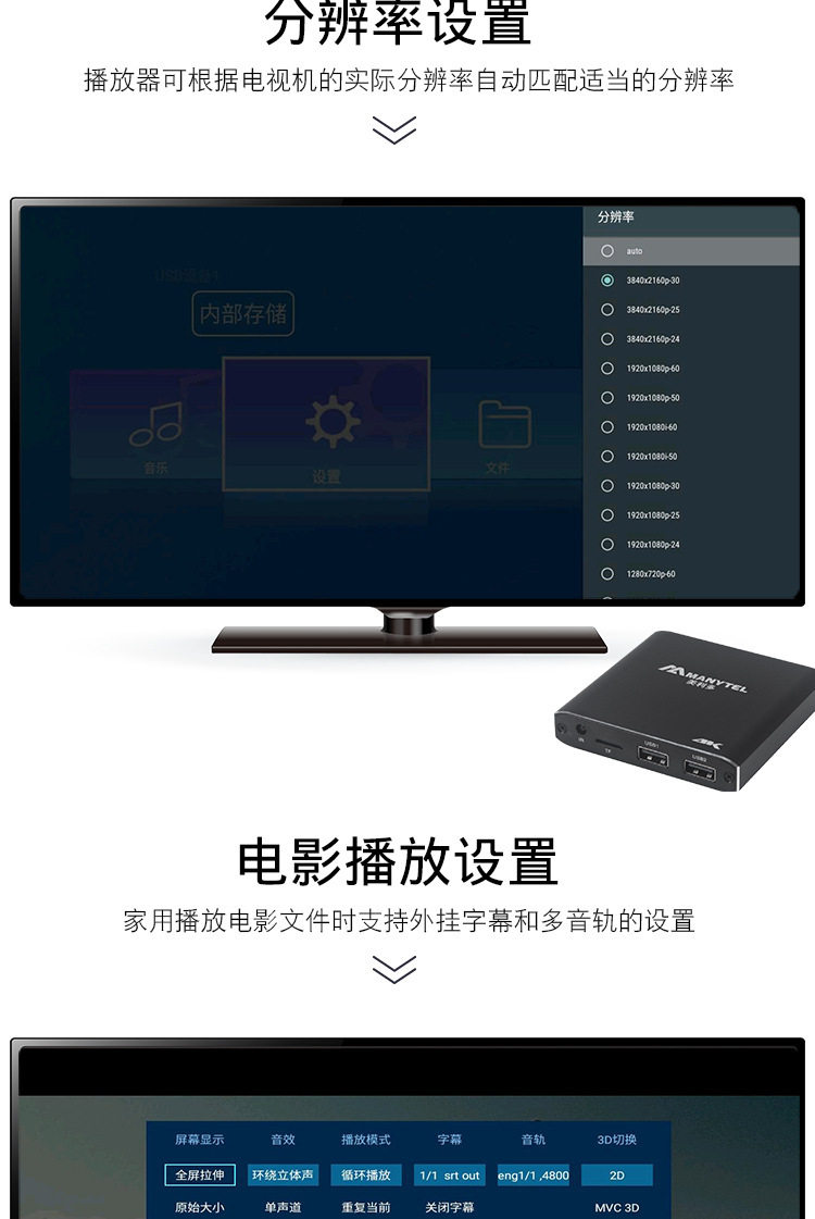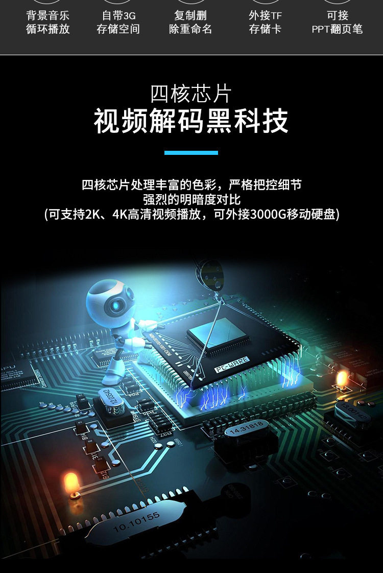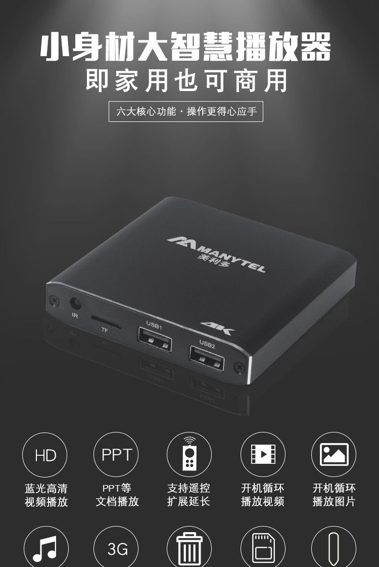 4K HD player hard disk U disk MP4 Mobile Multimedia Player TV projector monitor advertising machine