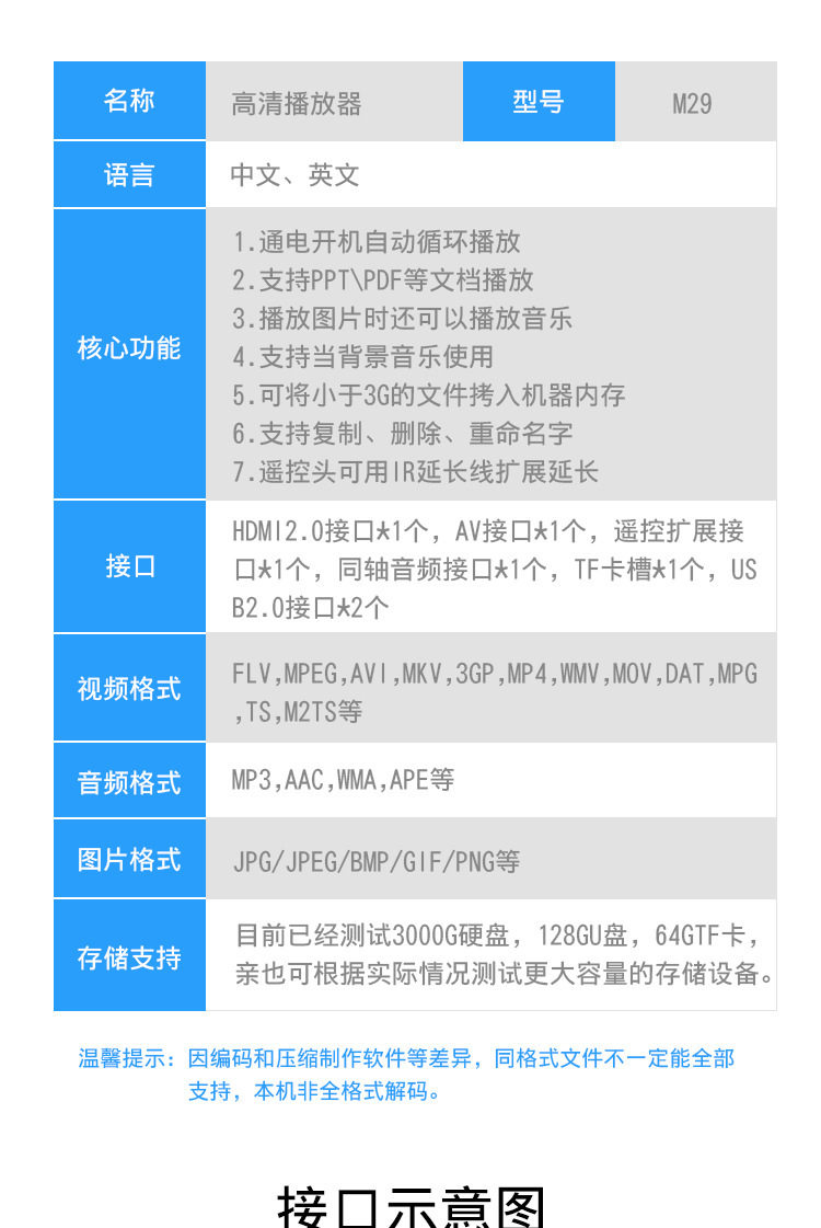 | Audio playback format | MP3,WMA,WAV |