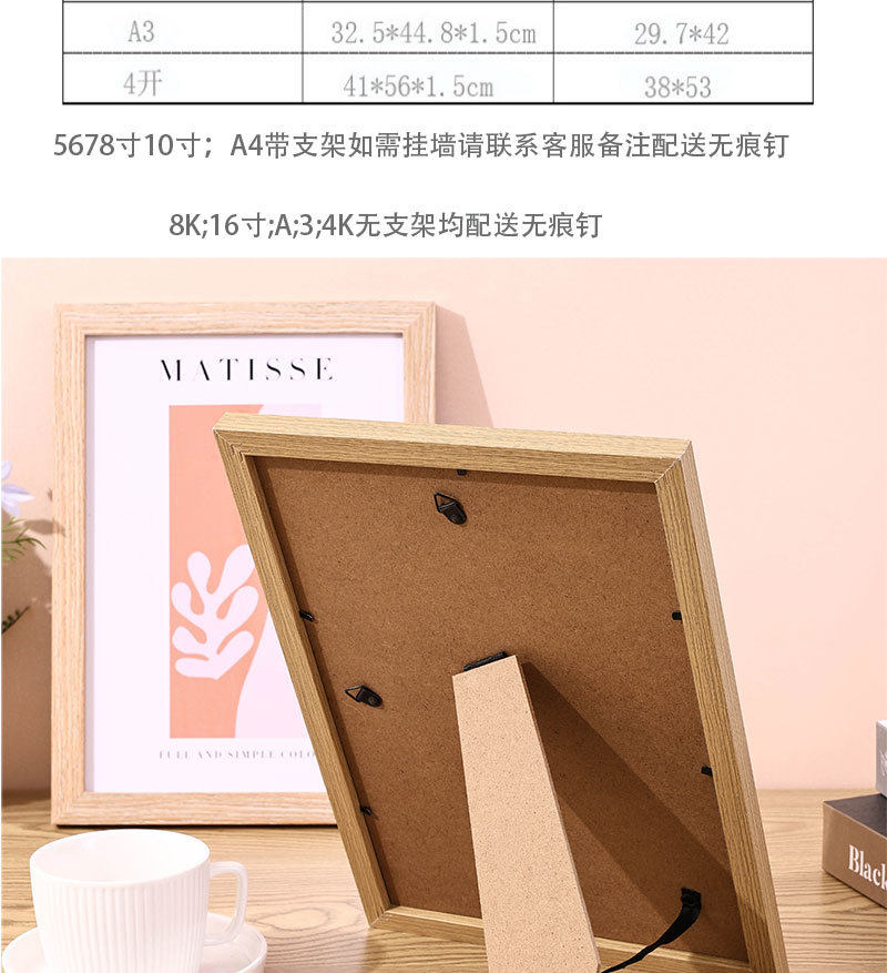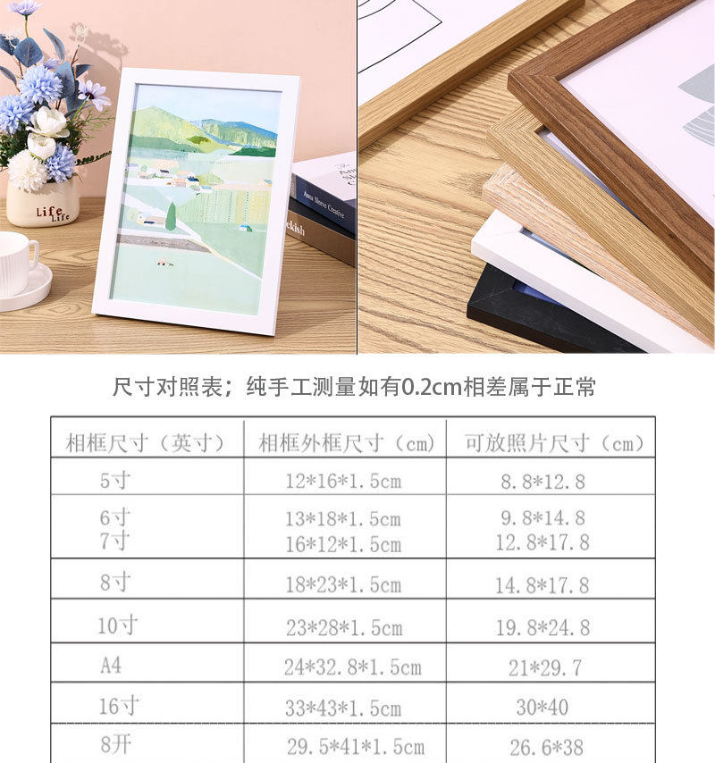 | Frame size | 5 inch (9x 13)cm,6 inch (10x 15)cm,7 inch (13x 18)cm,8 inch (15x 20)cm,10 inch (20x 25)cm,A4(21x29.7)cm,8K(26.6X38)cm,16 inch (30x 40)cm,A3(29.7x42)cm,4K(38X53)cm |