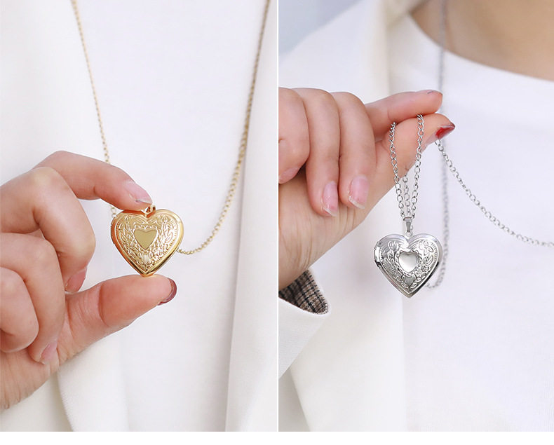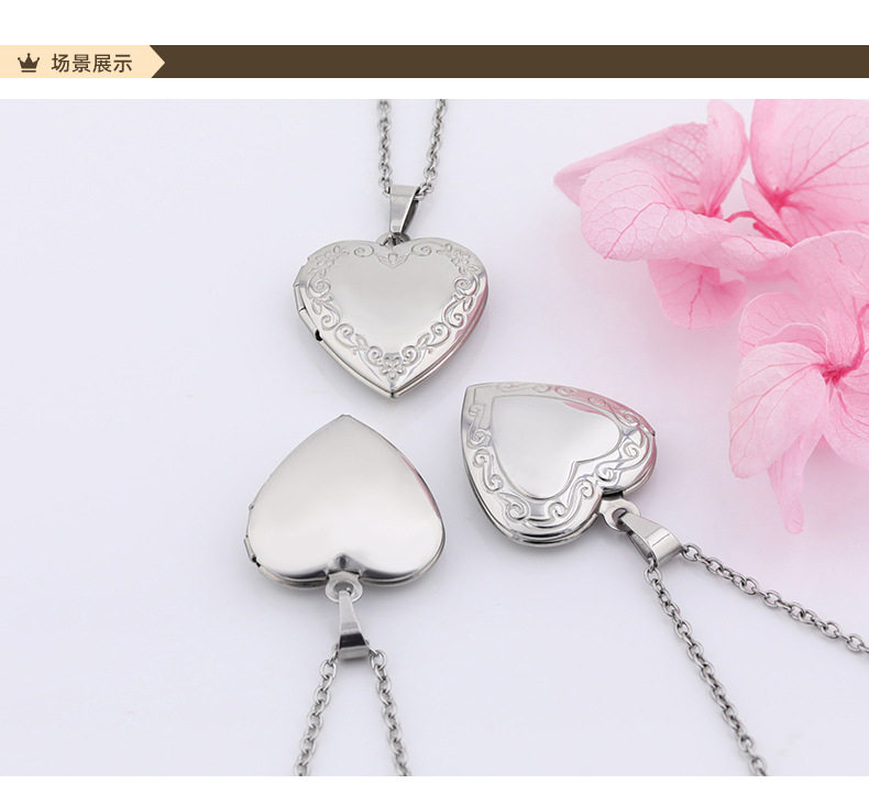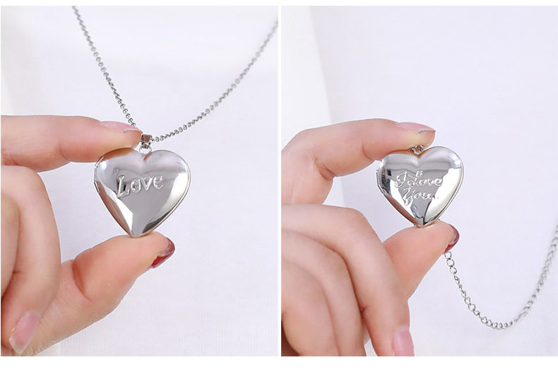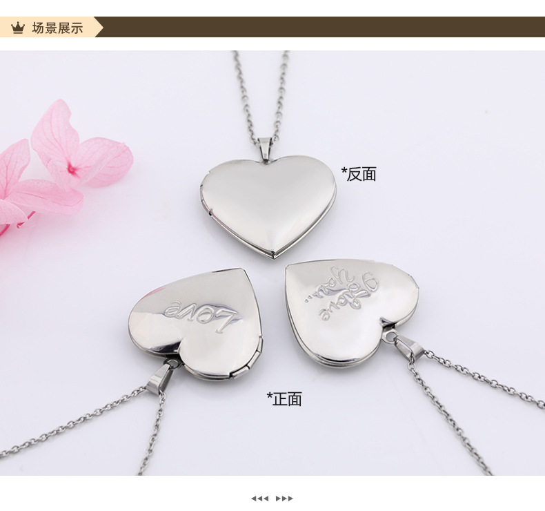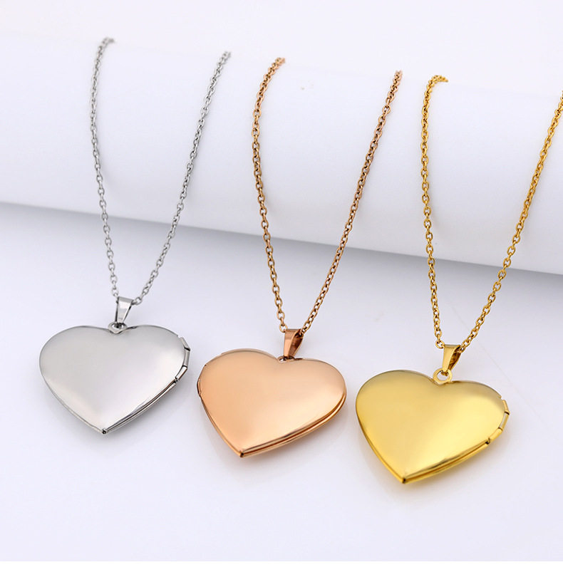Stainless Steel Glossy Peach Heart Photo Box Pendant Necklace for Women European and American Creative DIY Photo Couple Photo Frame Pendant Necklace