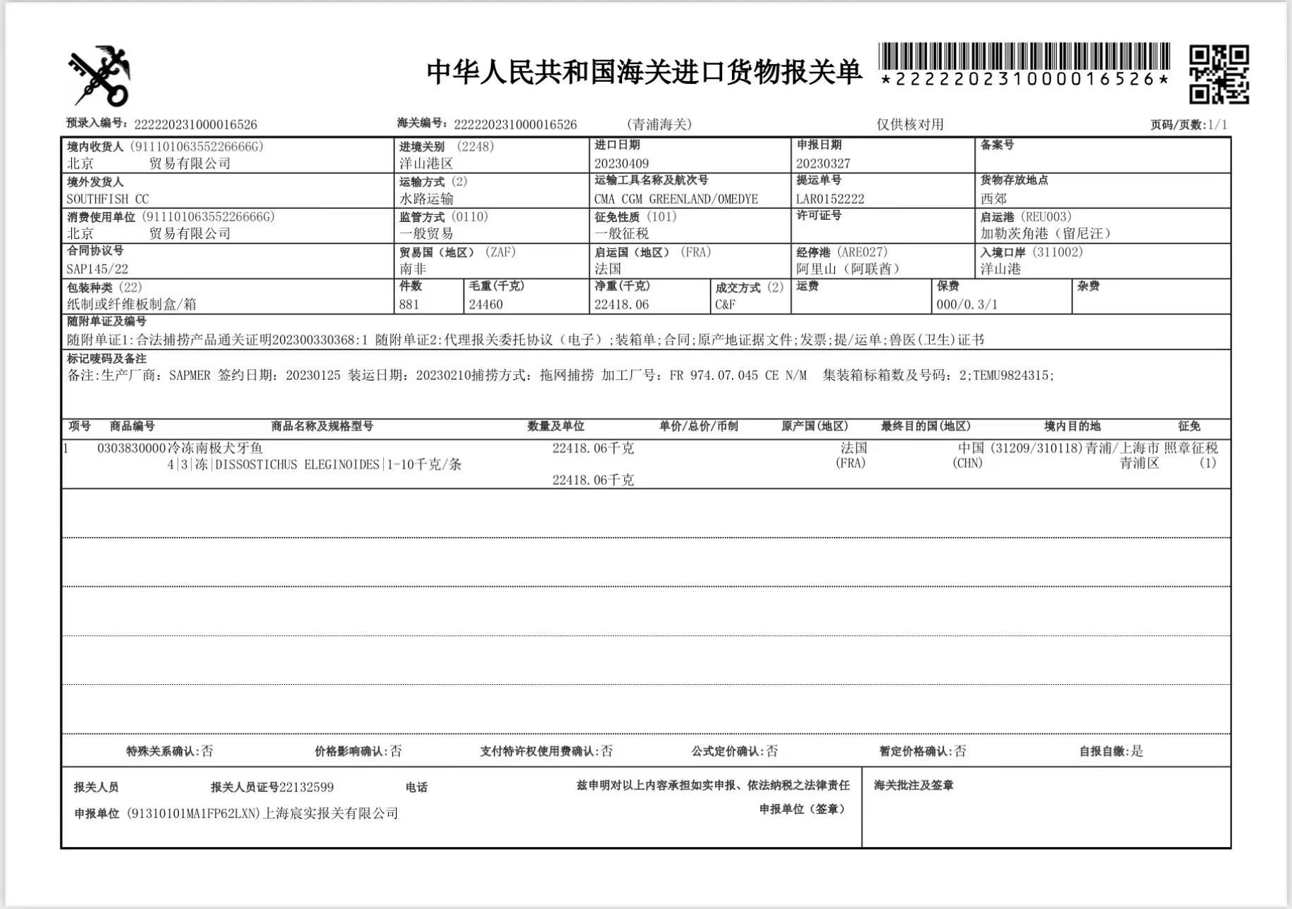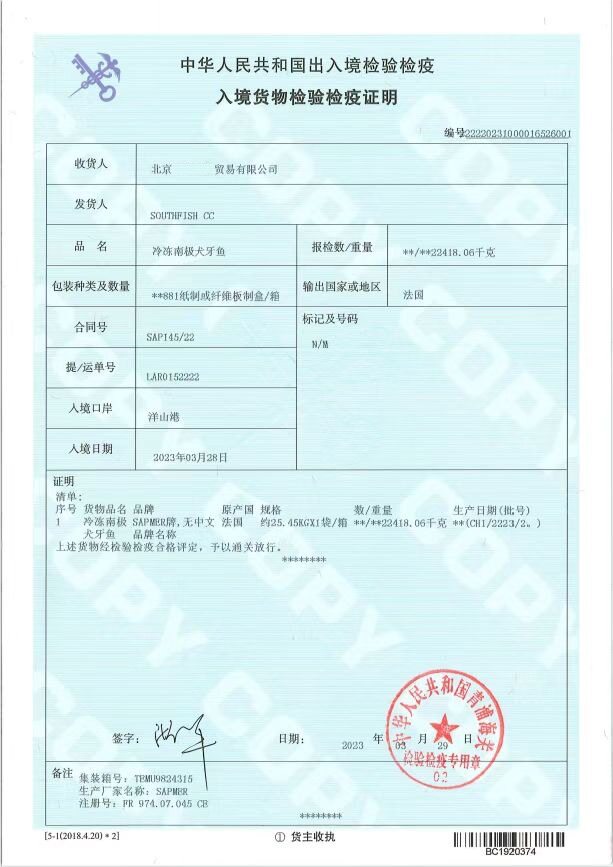 | Variety | Frozen antarctic toothfish |
