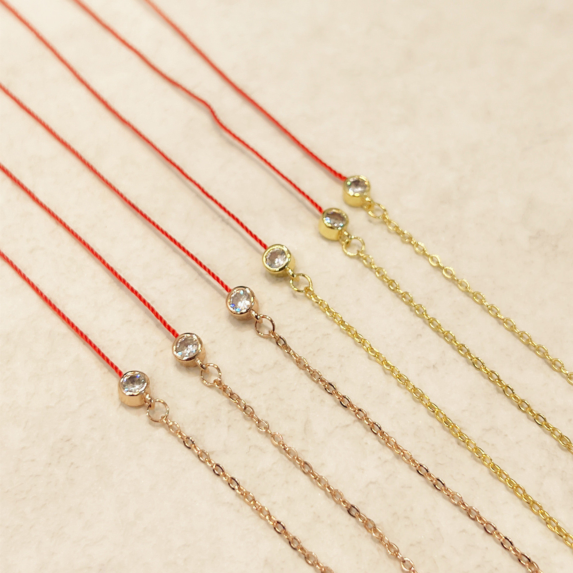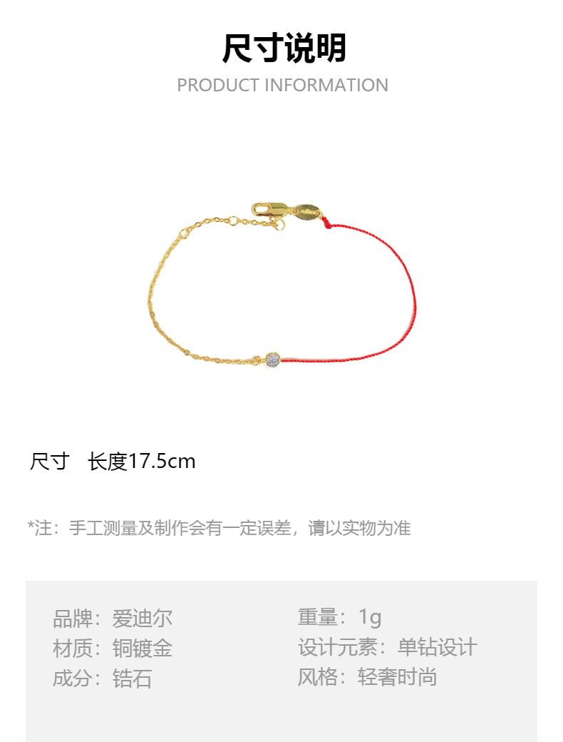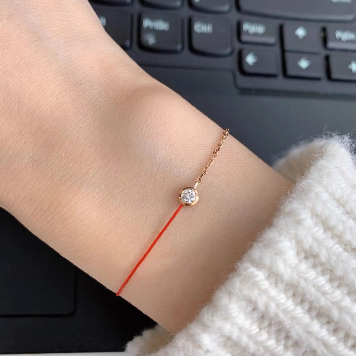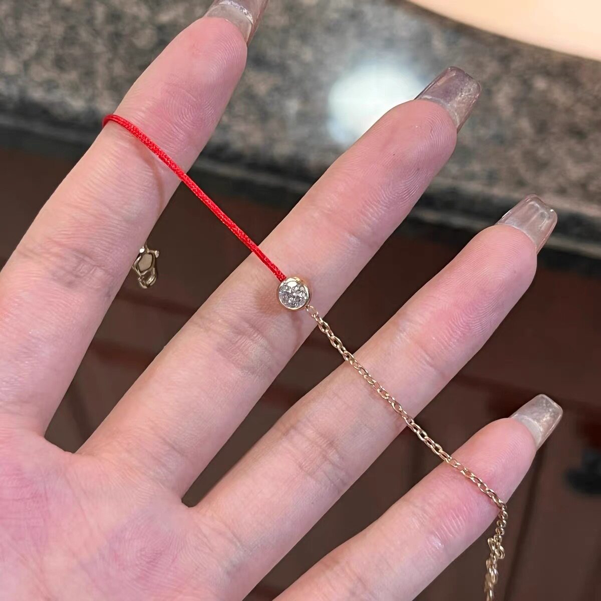 23 French red rope same style 18K gold birth year single diamond small red rope half rope half chain bracelet girlfriends gift