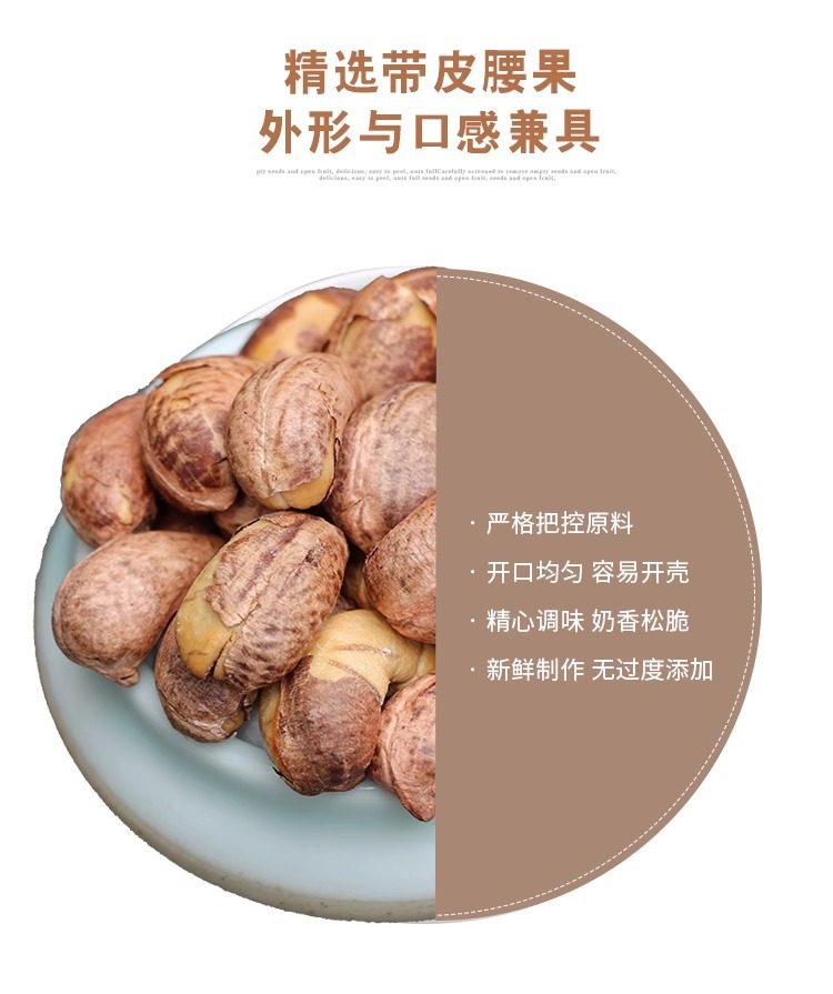 Cashew nuts with leather wholesale large particles bulk original flavor salt baked cashew nuts Vietnam specialty casual snack factory delivery