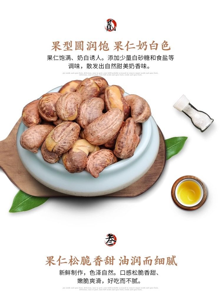 | Packing specification | Bagged net weight 250g (large particles),Canned net weight 500g (large particles),Bulk box 10kg (large particles),Bag net weight 100g (extra large particles),Bagged net weight 250g (extra large particles),Canned net weight 500g (extra large particles),Bulk box 10kg (extra large particles),Macadamia fruit bag net weight 250g,Almond bag net weight 250g,Pistachio bag net weight 250g,Bigen fruit bag net weight 250g,Northeast pine nuts bag net weight 250g,Net weight of hanging melon seeds bag 250g,Daily nut bag net weight 250g,Paper walnut bag net weight 250g,Amber walnut kernel bag net weight 250g,Almond bag net weight 250g,Caramel flavor melon seeds bag net weight 250g,Walnut flavor melon seeds bag net weight 250g,Red jujube flavor melon seeds bag net weight 250g,Garlic peanut bag net weight 250g,Walnut flavor peanut bag net weight 250g,Crab yellow orchid bean bag net weight 250g,Beef flavor orchid bean bag net weight 250g,Rattan pepper flavor orchid bean bag net weight 250g,Spicy orchid bean bag net weight 250g,[generation of wholesale] contact customer service more preferential |