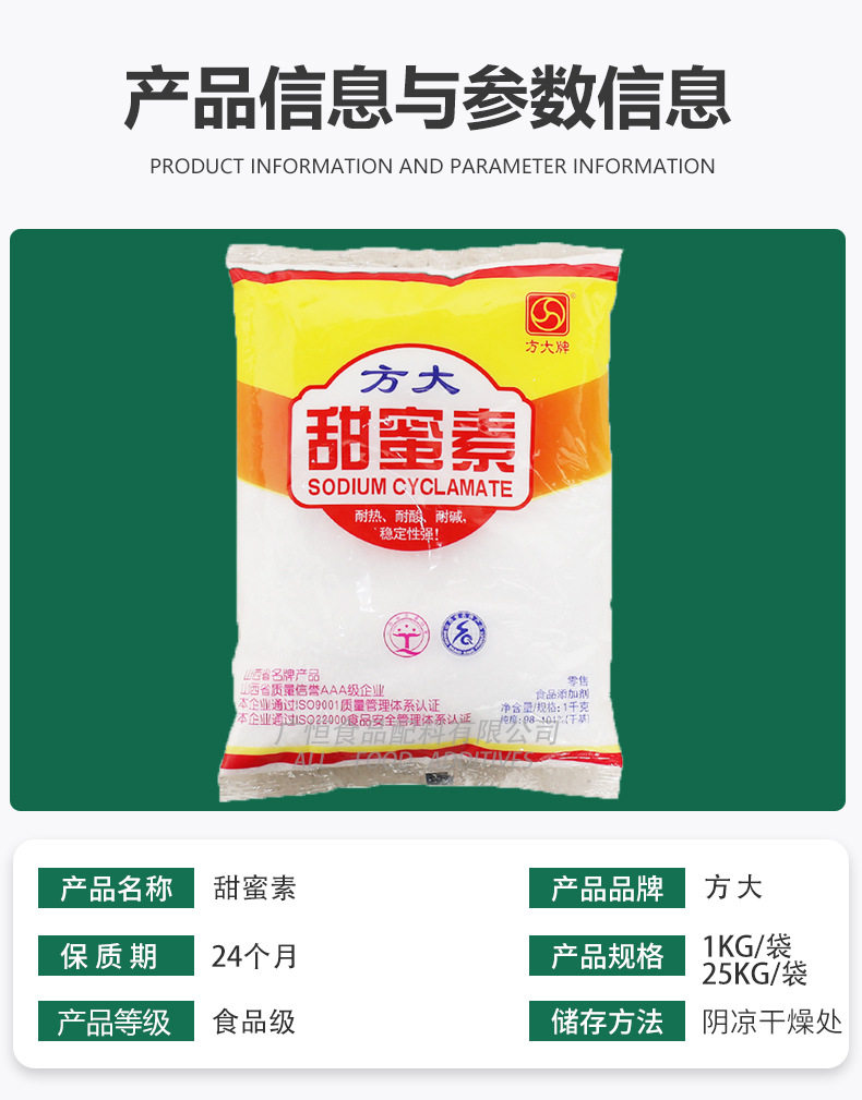 | Specification model | 1kg/pack [for large quantities, please consult customer service]; sodium ringhe amino sulfonate,25kg/bag [direct selection from the factory]; sodium cohexyl amino sulfonate |