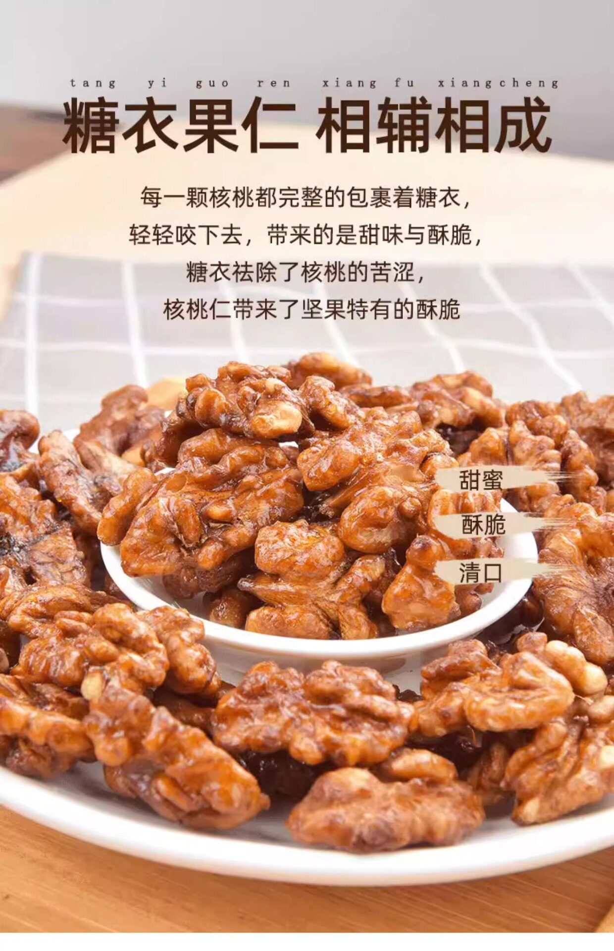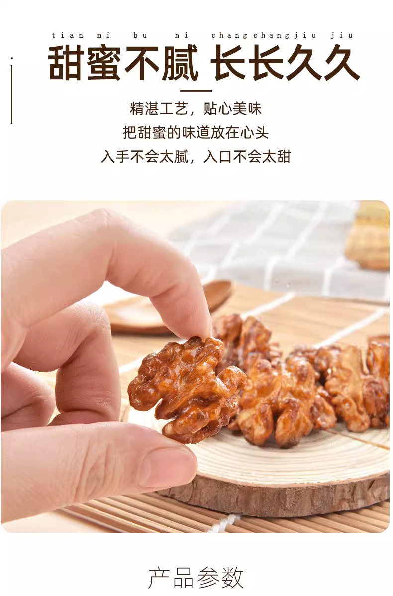 | Packaging specifications | Honey flavored bag, net weight 50g (large particles),Honey flavor bag, net weight 250g (large particles),Honey flavor canned net weight 500g (large capsules),Honey flavor bulk box 5kg (large particles),Macadamia nuts bagged net weight 250g,Cashew nuts bagged net weight 250g,Almond bagged net weight 250g,Pistachios bagged net weight 250g,Pecans in bags, net weight 250g,Northeastern pine nuts bagged net weight 250g,Daily nuts bag net weight 250g,Paper-skinned walnuts in bag, net weight 250g,Amber walnut kernels bagged net weight 250g,Almond kernels bagged net weight 250g,Hanging melon seeds in bag, net weight 250g,Chickpeas bagged net weight 250g,Black beans bagged net weight 250g,Golden beans bag net weight 250g,Crab roe flavored broad beans (lan hua dou), bagged, net weight 250g,Beef flavored orchid beans bagged net weight 250g,Rattan pepper flavored orchid beans bagged net weight 250g,Spicy orchid beans bag net weight 250g,Caramel flavored melon seeds bagged net weight 250g,Walnut flavored melon seeds bagged net weight 250g,Red date flavored melon seeds bagged net weight 250g,Five-flavored melon seeds in bag, net weight 250g,Milk-flavored melon seeds in bag, net weight 250g,Original melon seeds bagged net weight 250g,Garlic peanuts bag net weight 250g,Walnut flavored peanuts bagged net weight 250g,Creamy peanuts bag net weight 250g,Roasted peanuts bagged net weight 250g,Drunkard peanuts bagged net weight 250g,Wasabi flavored macadamia nuts, bagged, net weight 250g,Charcoal roasted cashew nuts in bag, net weight 250g,Pumpkin seeds bagged net weight 250g,Beauty melon seeds bagged net weight 250g,Watermelon seeds bagged net weight 250g,Brazilian pine nuts bagged net weight 250g,Pumpkin seeds bagged net weight 250g,Walnut kernels bagged net weight 250g,Cashew nuts bagged net weight 250g,Pecan kernels bagged net weight 250g,Torreya bagged net weight 250g,White apricot bagged net weight 250g,Hazelnut bag net weight 250g,Abalone fruit bag net weight 250g,Hazelnut kernels bagged net weight 250g,Pistachio kernels bagged net weight 250g,Macadamia nuts bagged net weight 250g,Garlic sprouts and green beans in bag, net weight 250g,Crab melon and melon seeds bagged net weight 250g,Crispy rice crispy rice bagged net weight 250g,Small twist seaweed flavor bag net weight 250g,Thai fried rice bagged net weight 250g,Salad french fries bagged net weight 250g,Multi-flavor peanuts bagged net weight 250g,Red date rings, bagged, net weight 250g,Red dates bagged net weight 250g,Dates bagged net weight 500g,Dried mango bag net weight 500g,Banana chips bagged net weight 500g,Dried sweet potato bag, net weight 500g,Dried strawberries bagged net weight 500g,Dried yellow peach bag net weight 500g,Dried apricots in bags, net weight 500g,Dried apples in bags, net weight 500g,Dried pineapple bagged net weight 500g,Dried cranberries bagged net weight 500g,Dried kiwi fruit bagged net weight 500g,Prunes in bags, net weight 500g,Hawthorn strips bagged net weight 500g,Raisins bagged net weight 500g,Four-color raisins bagged net weight 500g,Hawthorn rings bagged net weight 500g,Hua mei (plum) candied fruit, bagged, net weight 500g,Licorice kumquat bagged net weight 500g,Dried figs bagged net weight 500g,Plum strips bagged net weight 500g,Fruit and vegetable crisps bagged net weight 200g,Freeze-dried strawberries bagged net weight 150g,Dried jackfruit bagged net weight 150g |