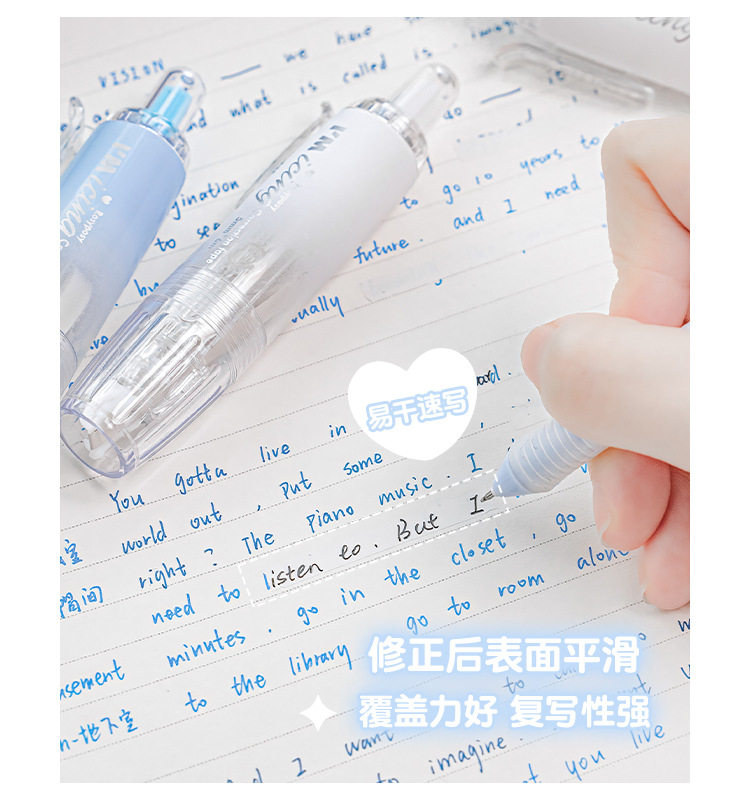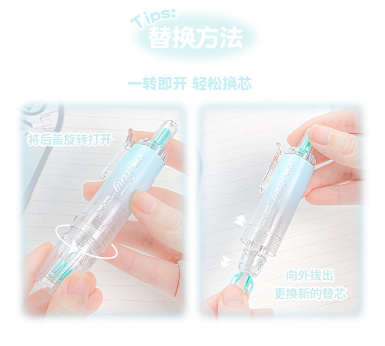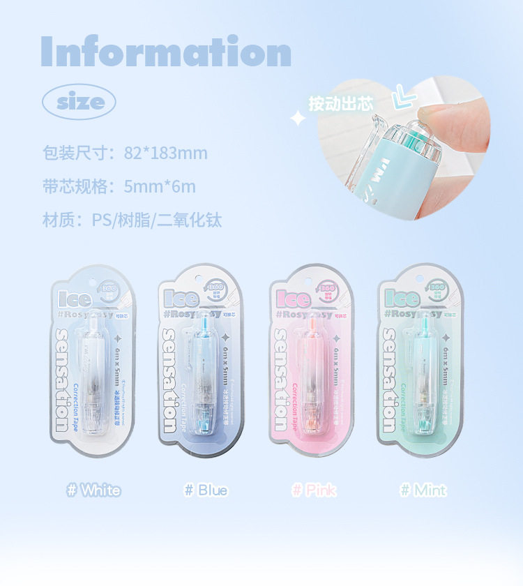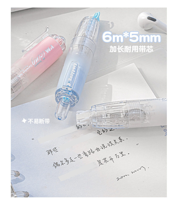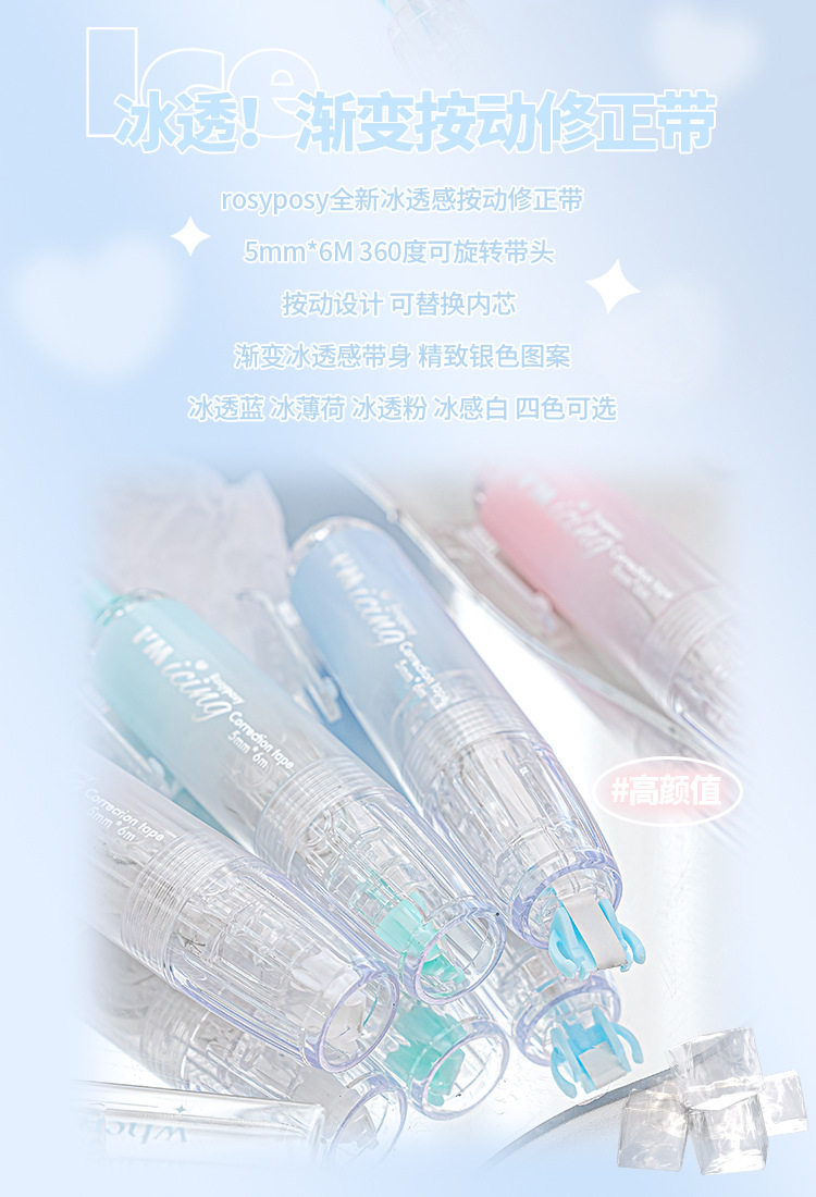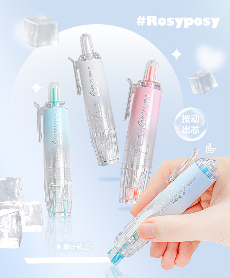 RosyPosy soft ice-permeable push correction tape core-changeable wrong word correction tape rotatable head correction tape