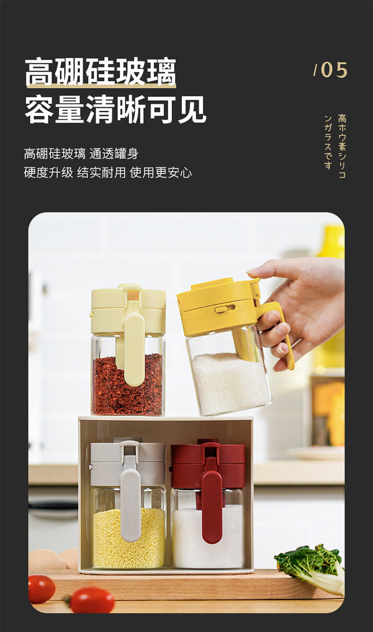 Material spoon separation seasoning box kitchen household seasoning tank salt pitcher seasoning storage box two-in-one design