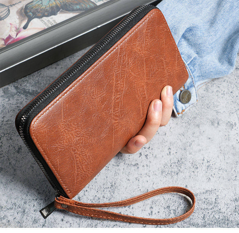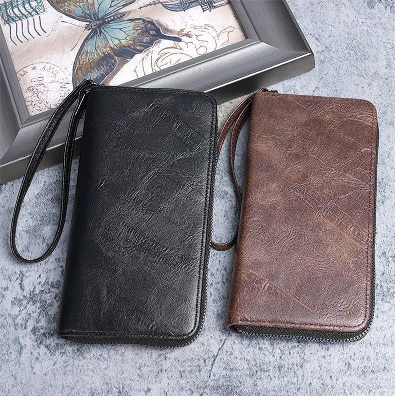 Factory wholesale long wallet zipper mobile phone bag soft thin multi-functional business coin purse retro multi-card card holder