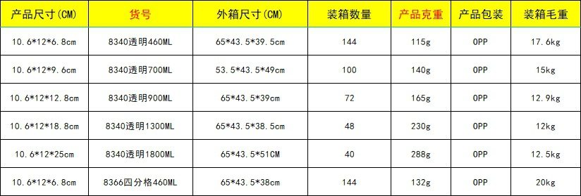 | Color | Transparent 460ml with lid,Transparent 700ml with lid,Transparent 900ml with lid,Transparent 1300ml with lid,Transparent 1800ml with lid,460ml four-part grid,700ml four-part grid with cap,680ml six-part cap,Single lid (universal size) |