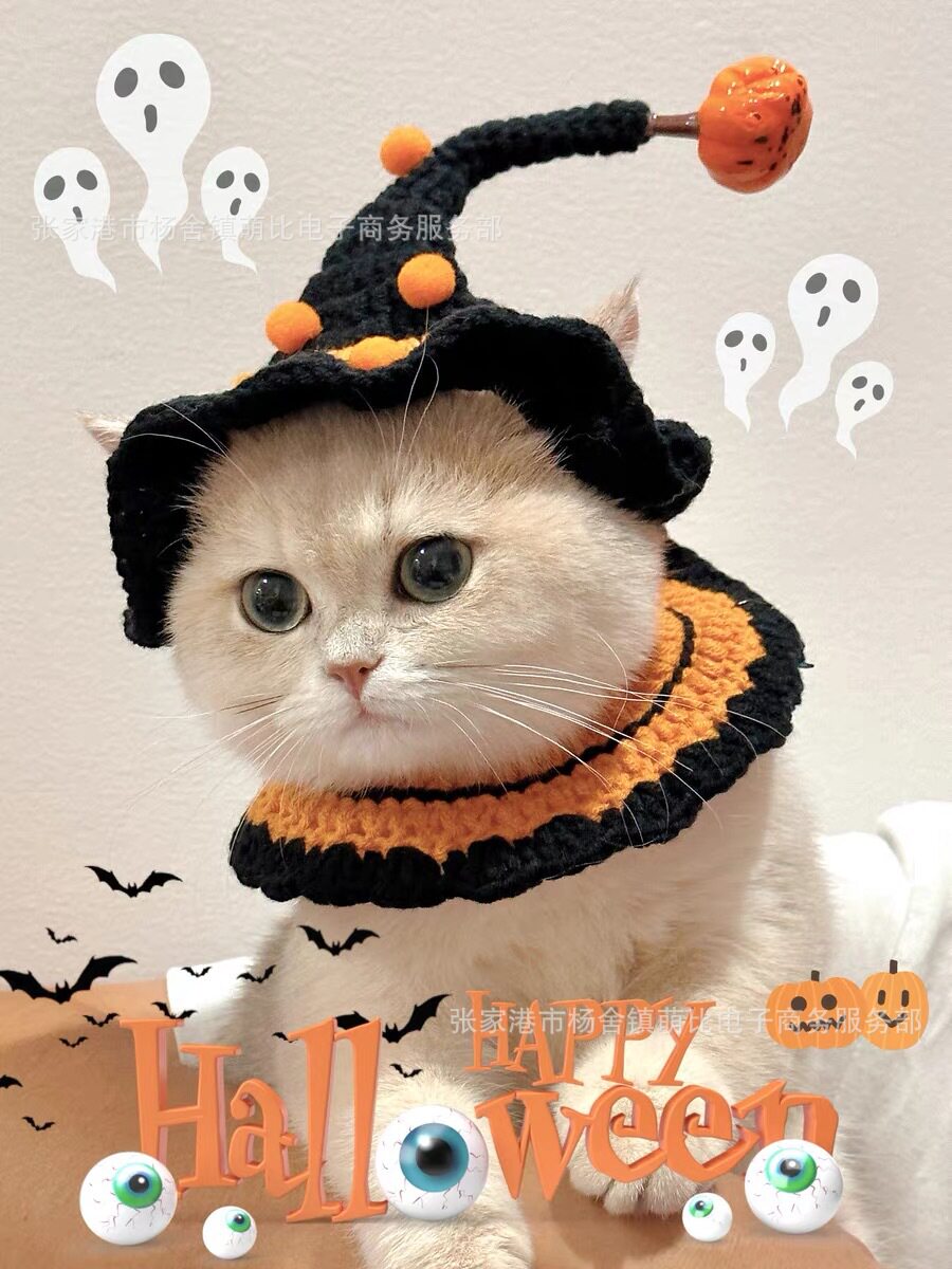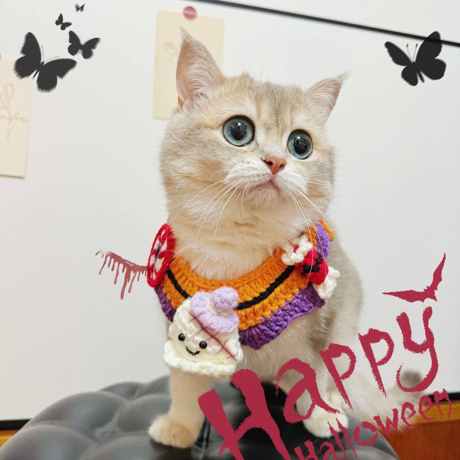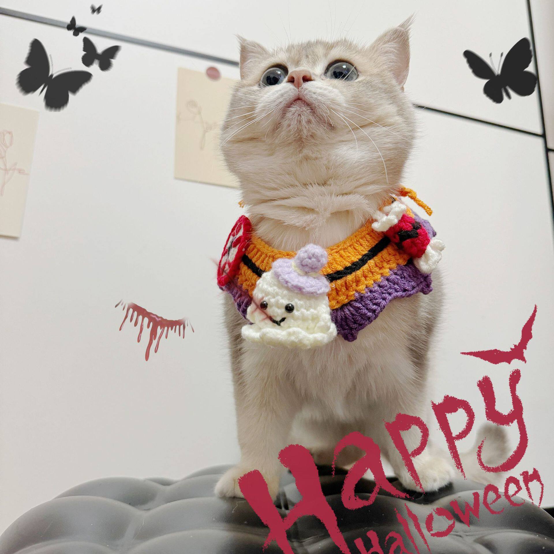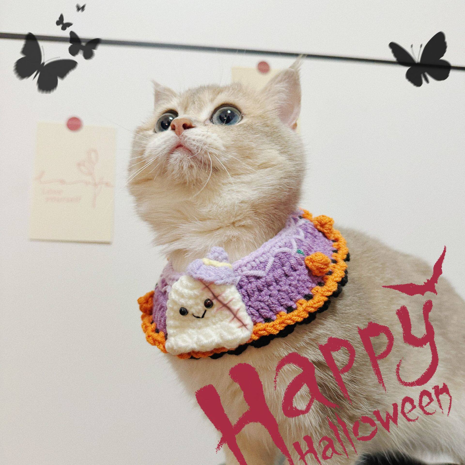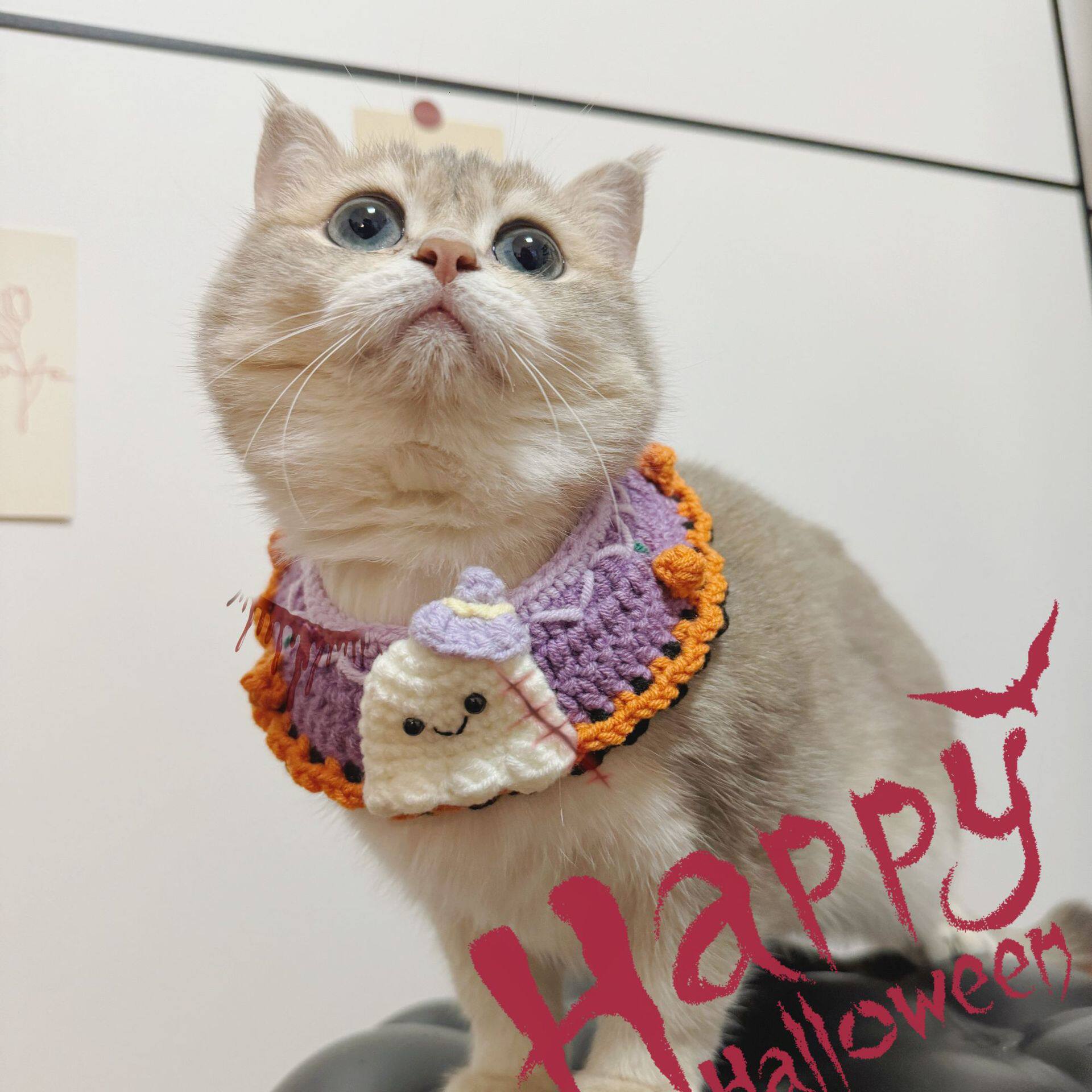 Pet Halloween knitted scarf cat dog ghost collar funny decorations cat and dog supplies wholesale