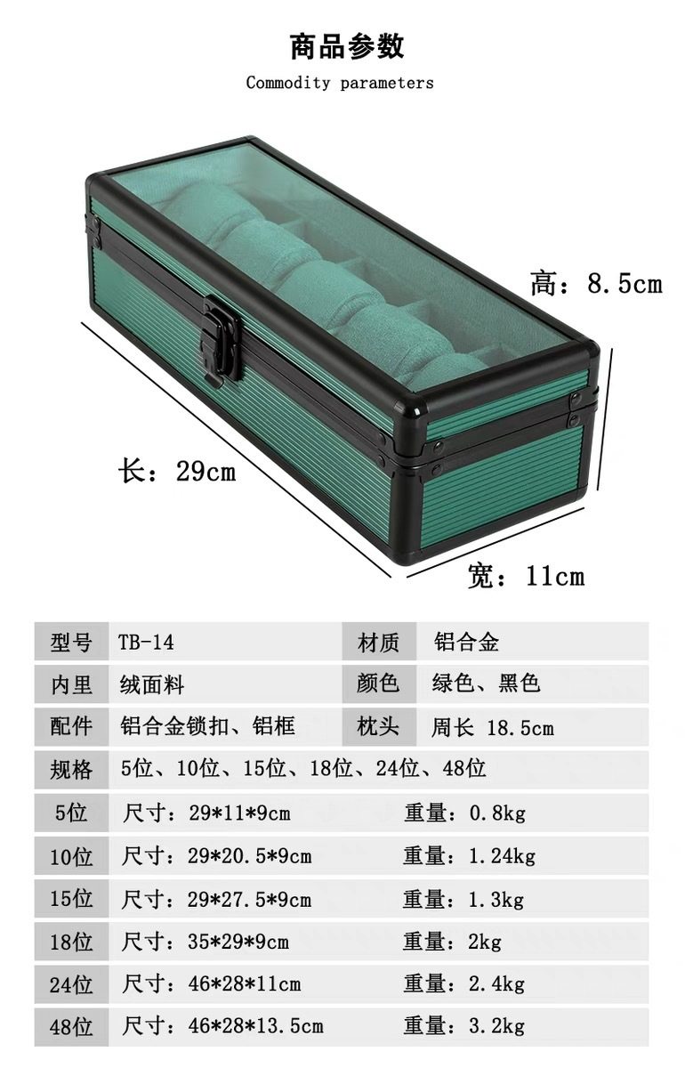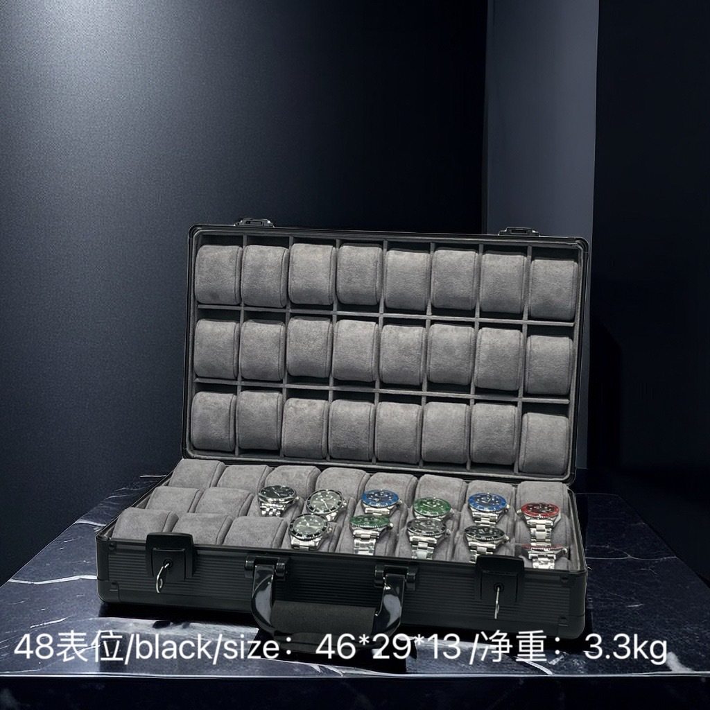 Aluminum Alloy Watch Jewelry Storage Box 48-Bit Sealed Double-Open Labor Green Packaging New Gift Box Metal
