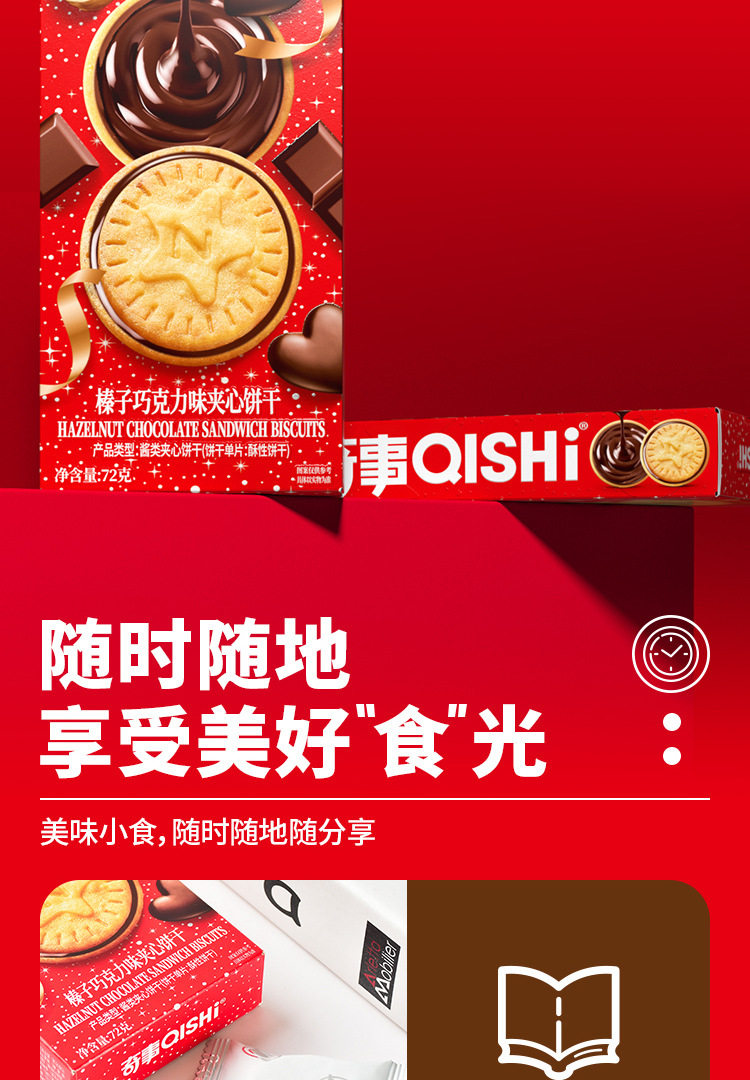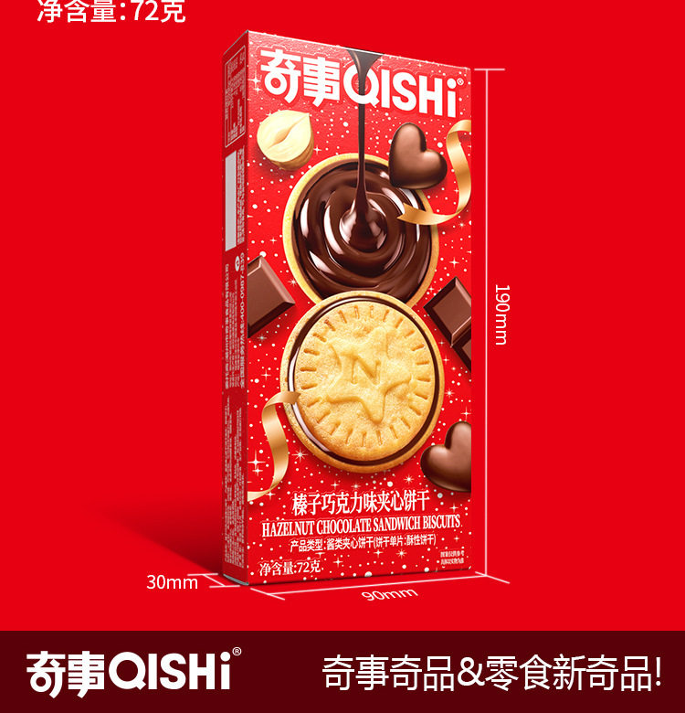 | Packaging specifications | Hazelnut Chocolate sandwich biscuits 72g |