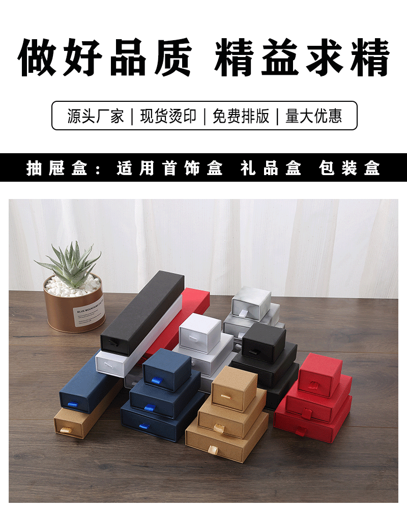 Wholesale Drawer Box Printing Hot Stamping Logo Custom Red Pink Blue Jewelry Jewelry Packaging Box Paper Box Customization