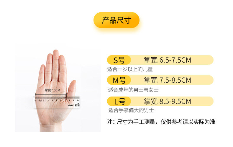 | Specifications | S code (children over 6 years old),Size m (adult with smaller palm),L code (adult men) |