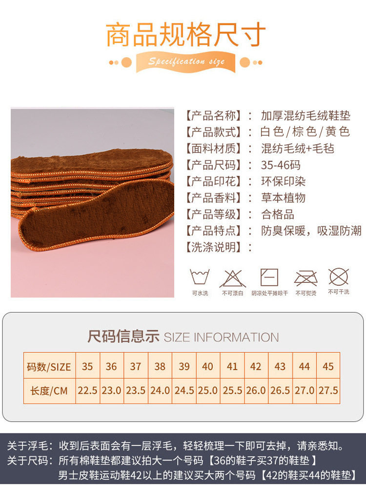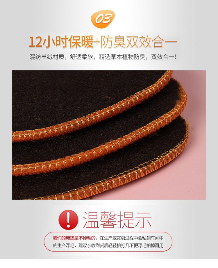 New winter thickened fleece-lined fur insole men and women deodorant sweat-absorbent wool plush thickened cotton insole wholesale