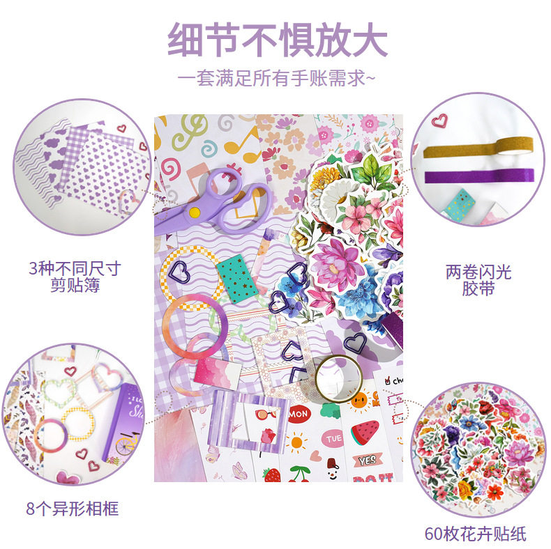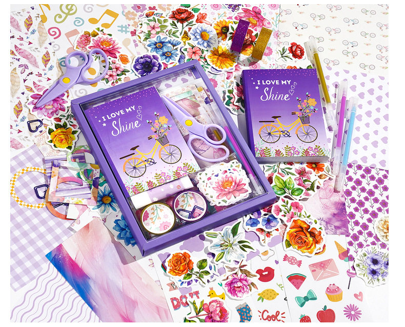 Cross-Border hand book gift box stickers 180 pieces European and American Flowers High-looking diy material scrapbook hand book suit