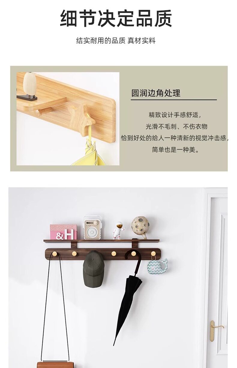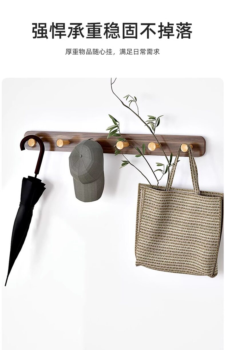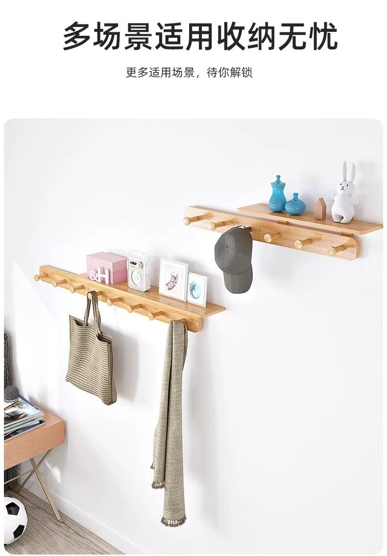 Solid wood hanger home clothes wall hanging hook punch-free wall hanger