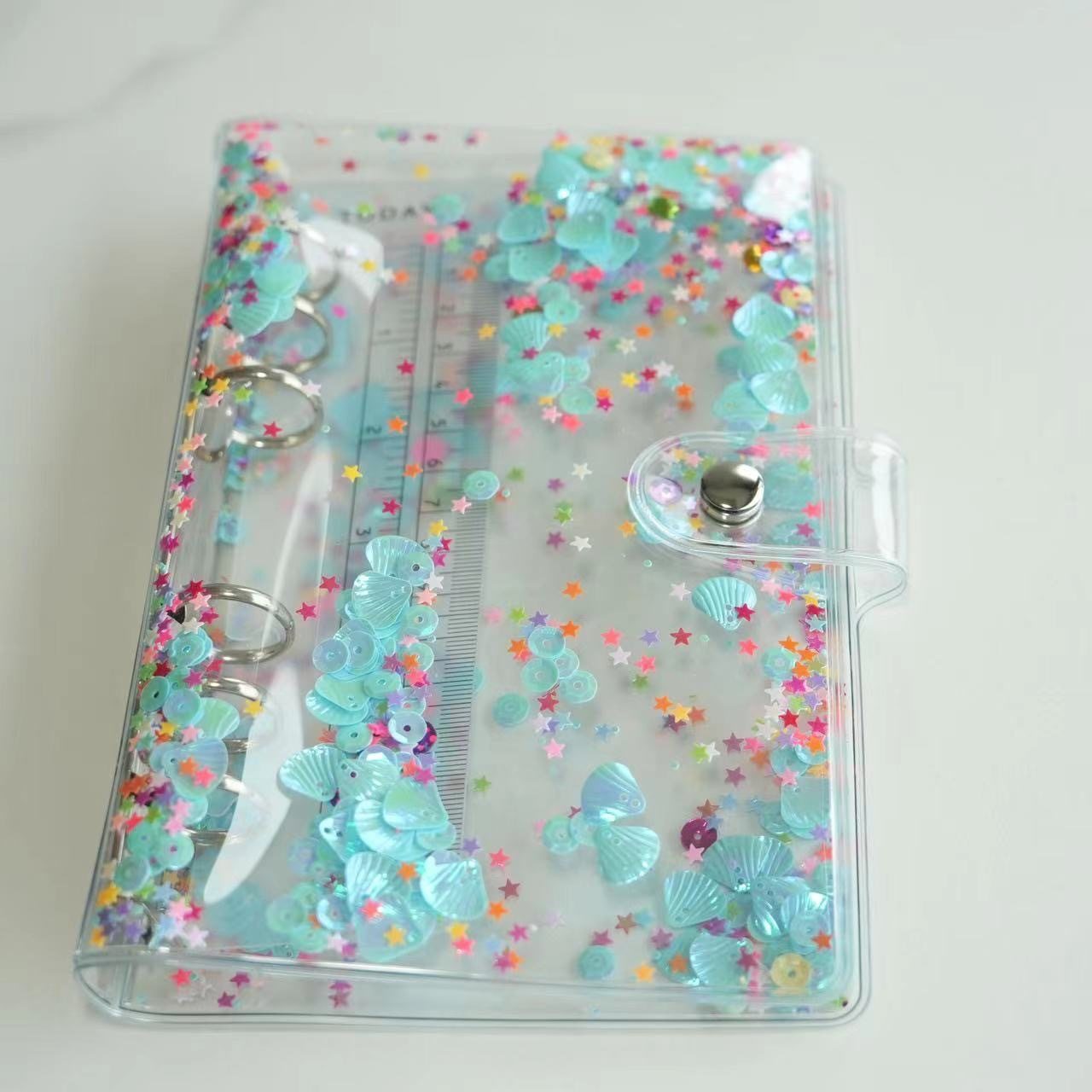 Transparent Pvc Colorful Sequin Blue Shell Loose-Leaf Fresh Trendy A5 A6 Loose Powder Planner Full-Color