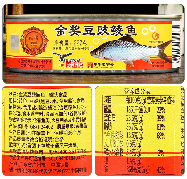 Packaging specifications [Whole box] Gold Award fermented black bean, 227g * 24 cans,[Full box] Gold Award fresh fried mandarin fish 227g * 24 cans (no fermented bean),[Whole box] high-quality fermented black bean fish 227g * 24 cans,[Whole box] high-quality fermented black bean fish 180g * 24 cans,[Half box] Gold Award fresh fried mandarin fish 227g * 12 cans (no fermented bean),[Half a box] Gold Award fermented black bean, 227g * 12 cans