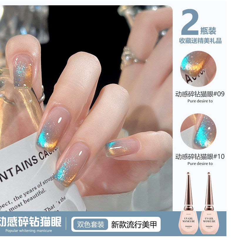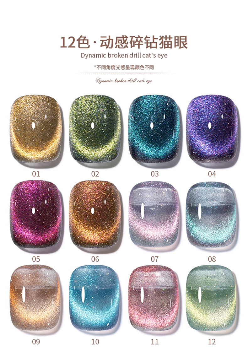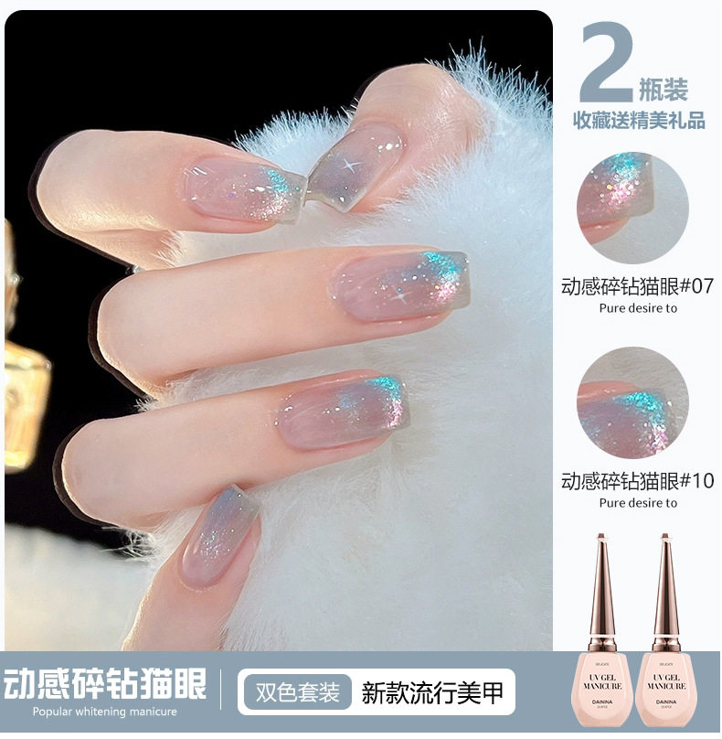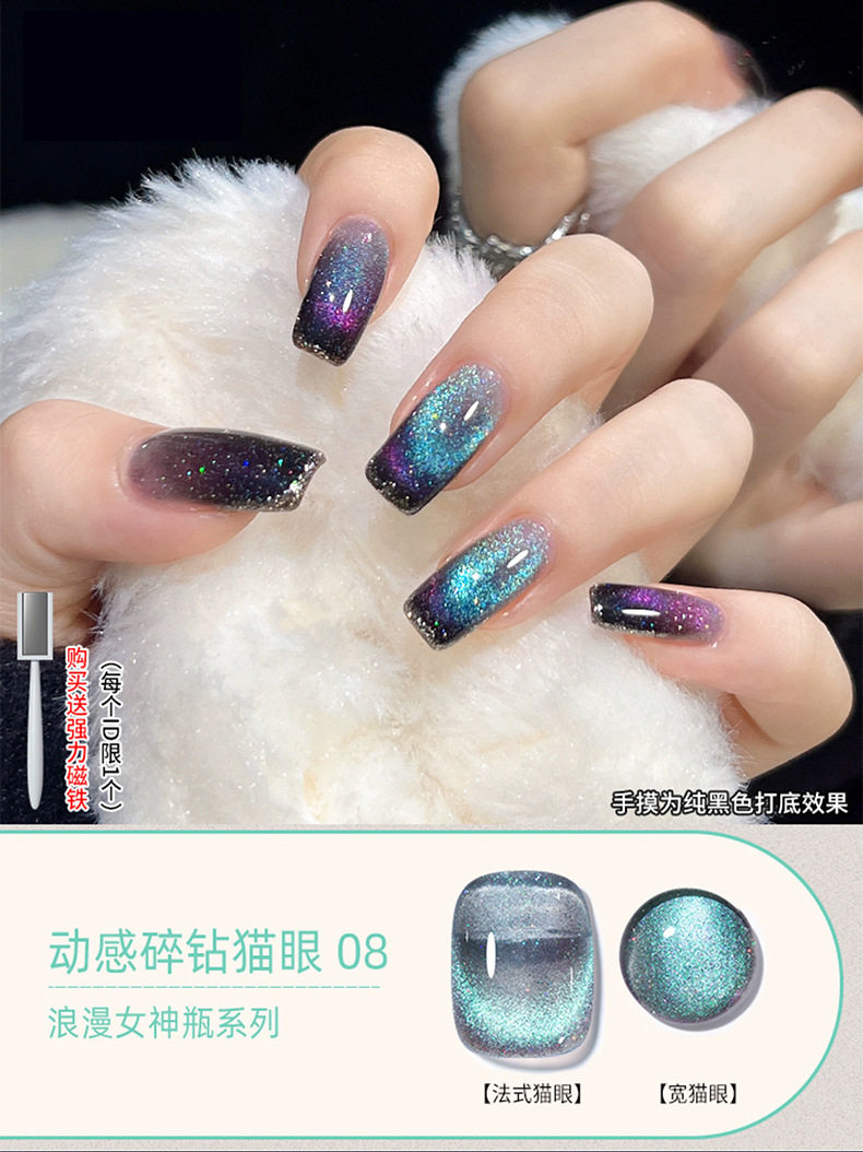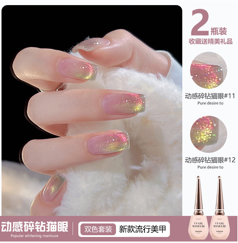 Dynamic Crushed Diamond Cat's Eye Nail Polish Glue 2025 New Flash Cat's Eye Set Full Set for Nail Salons