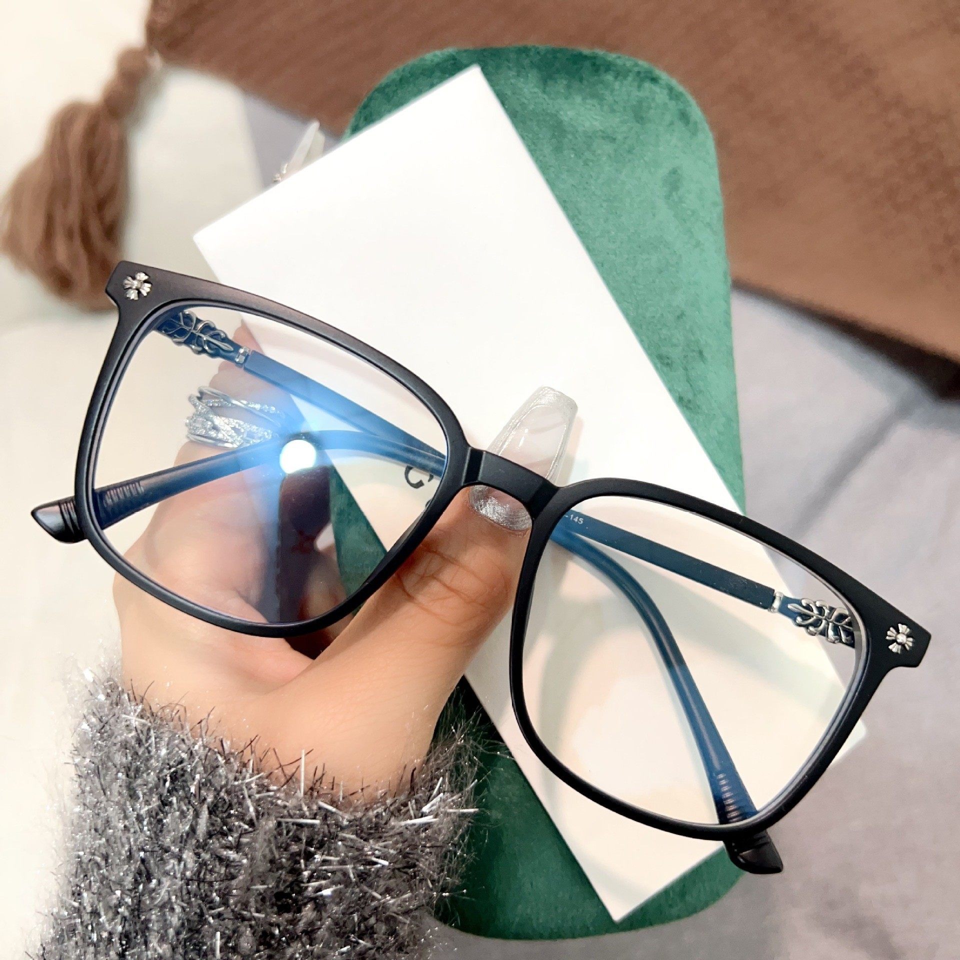2023 presbyopic myopia same style women's glasses frame men's plain square frame big face can be equipped with degree lens glasses frame