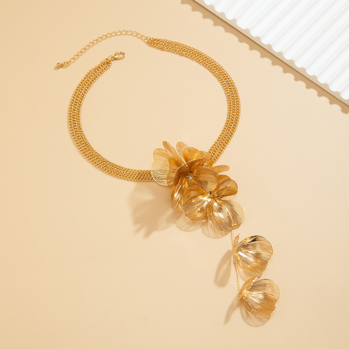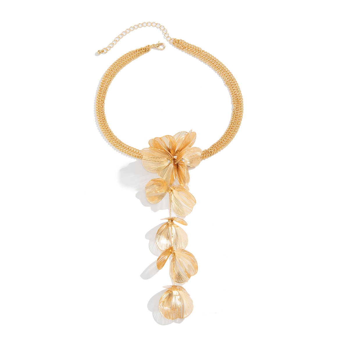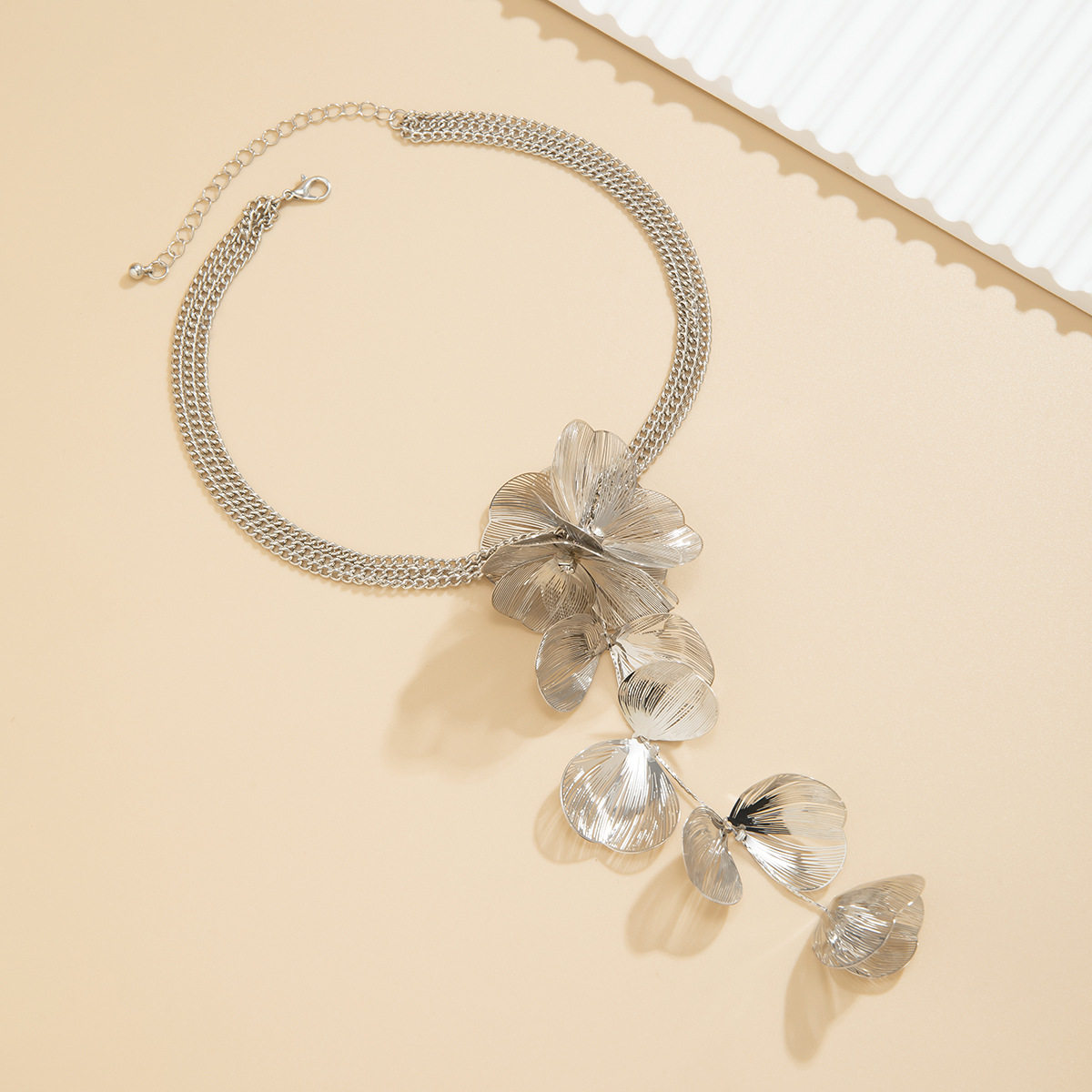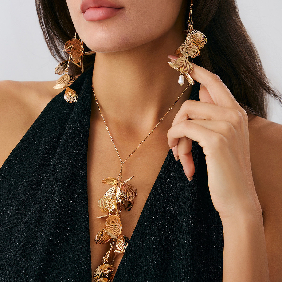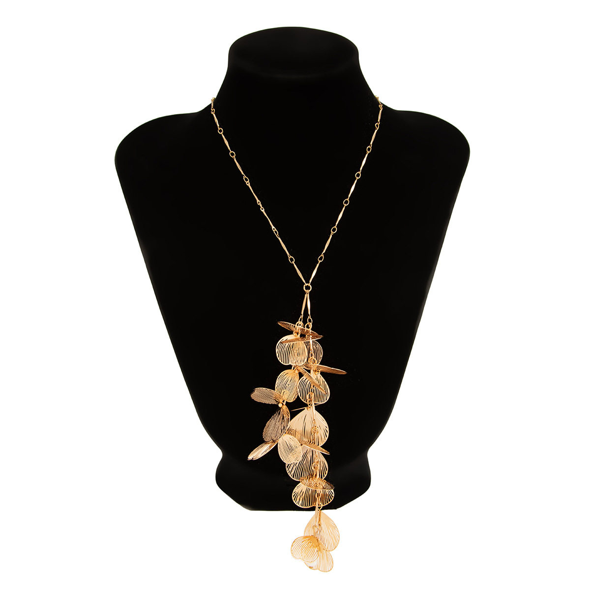 European and American niche ginkgo leaf tassel necklace sweet cool style design cross-border retro pull collar jewelry choker
